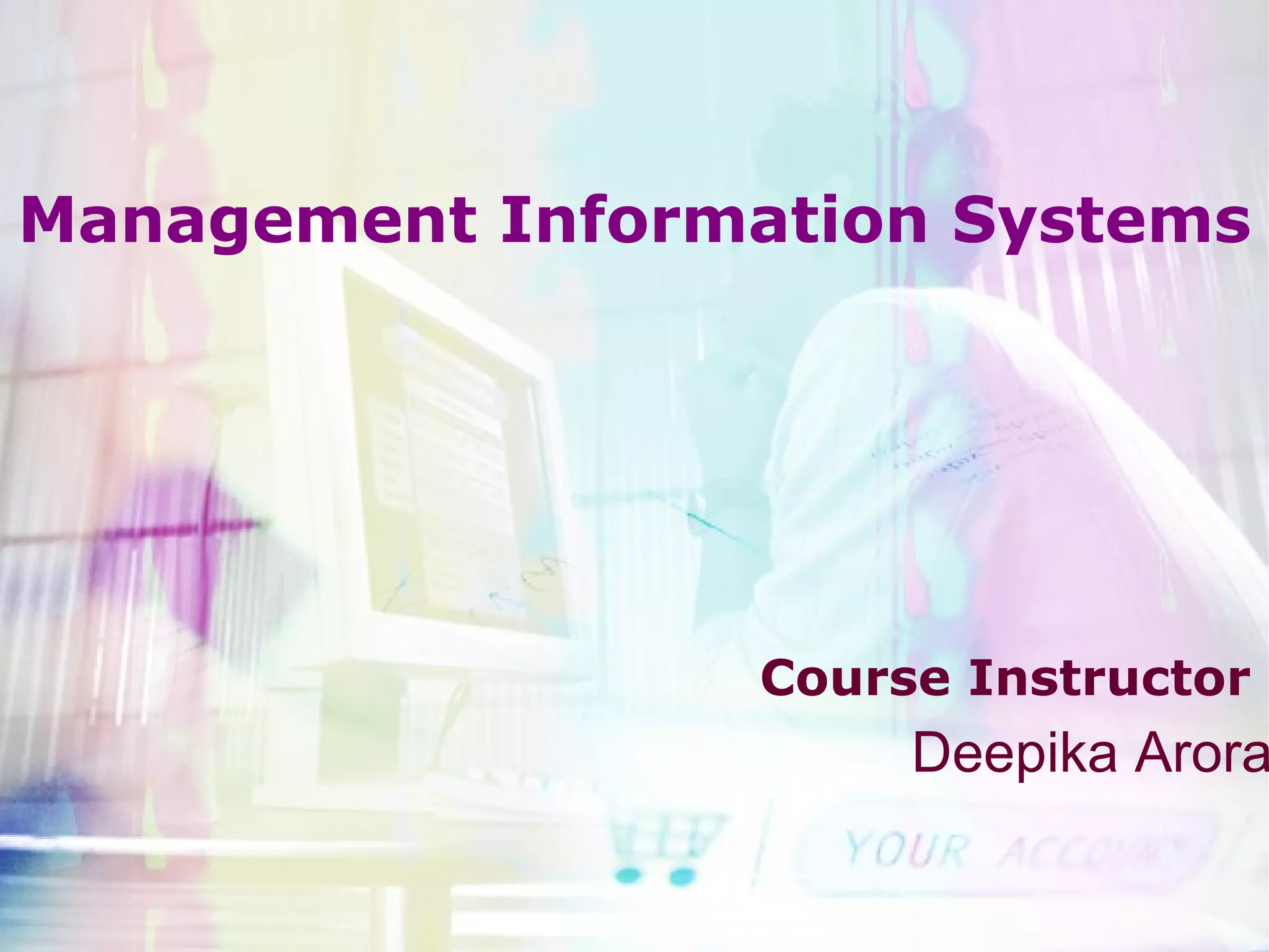 This document provides an overview of the Management Information Systems course taught by instructor Deepika Arora. It outlines the topics that will be covered in the course over 16 weeks under 5 submodules: introduction to IS, decision making, database management, systems analysis and design, and managing the digital firm. It also provides the grading criteria, attendance policy, textbook references, online resources, lesson plans, presentation topics, and case studies that will be covered. The key topics include different types of IS, decision support systems, database management systems, the system development life cycle, ERP, CRM, and security and control of international IS.