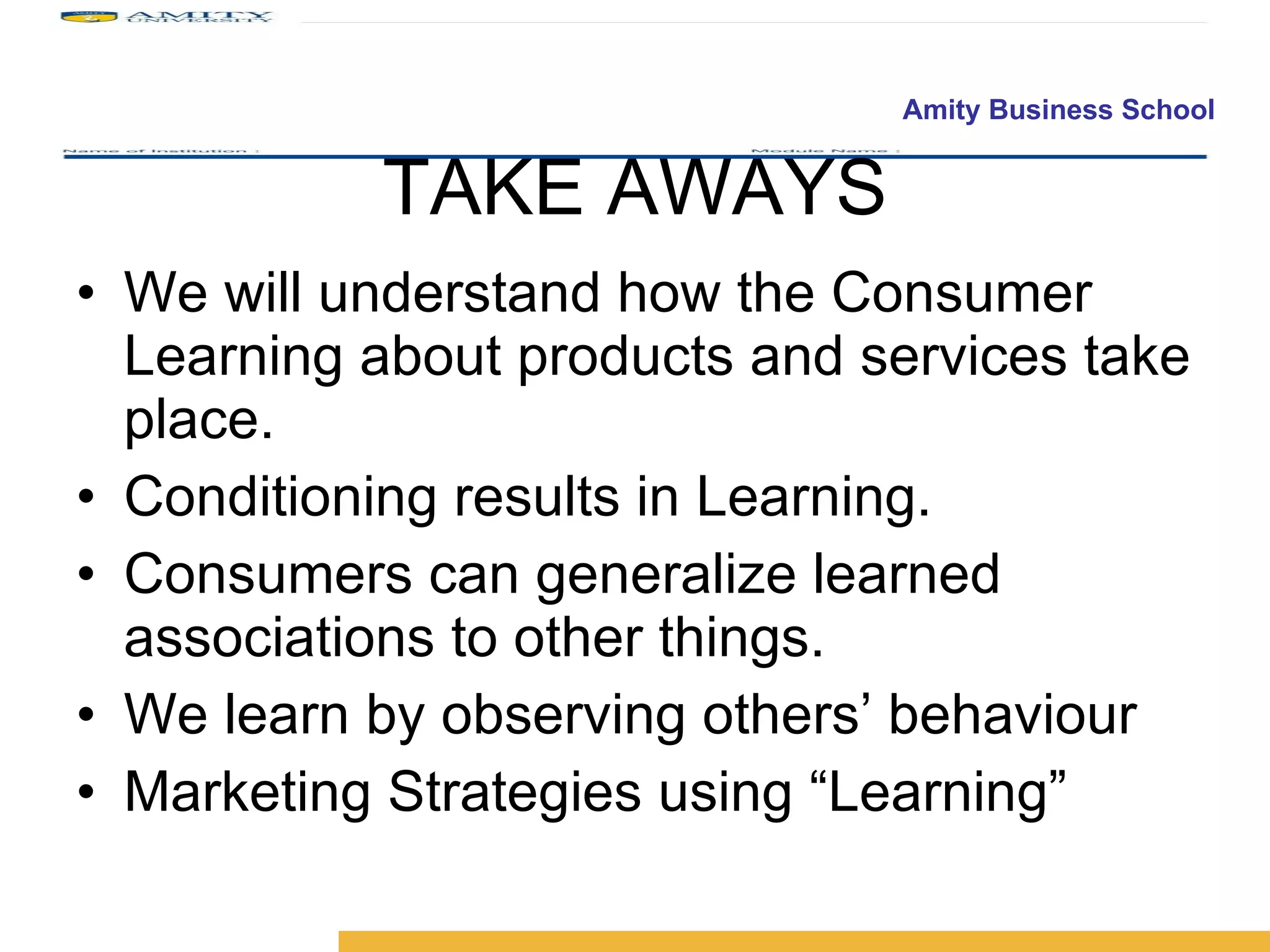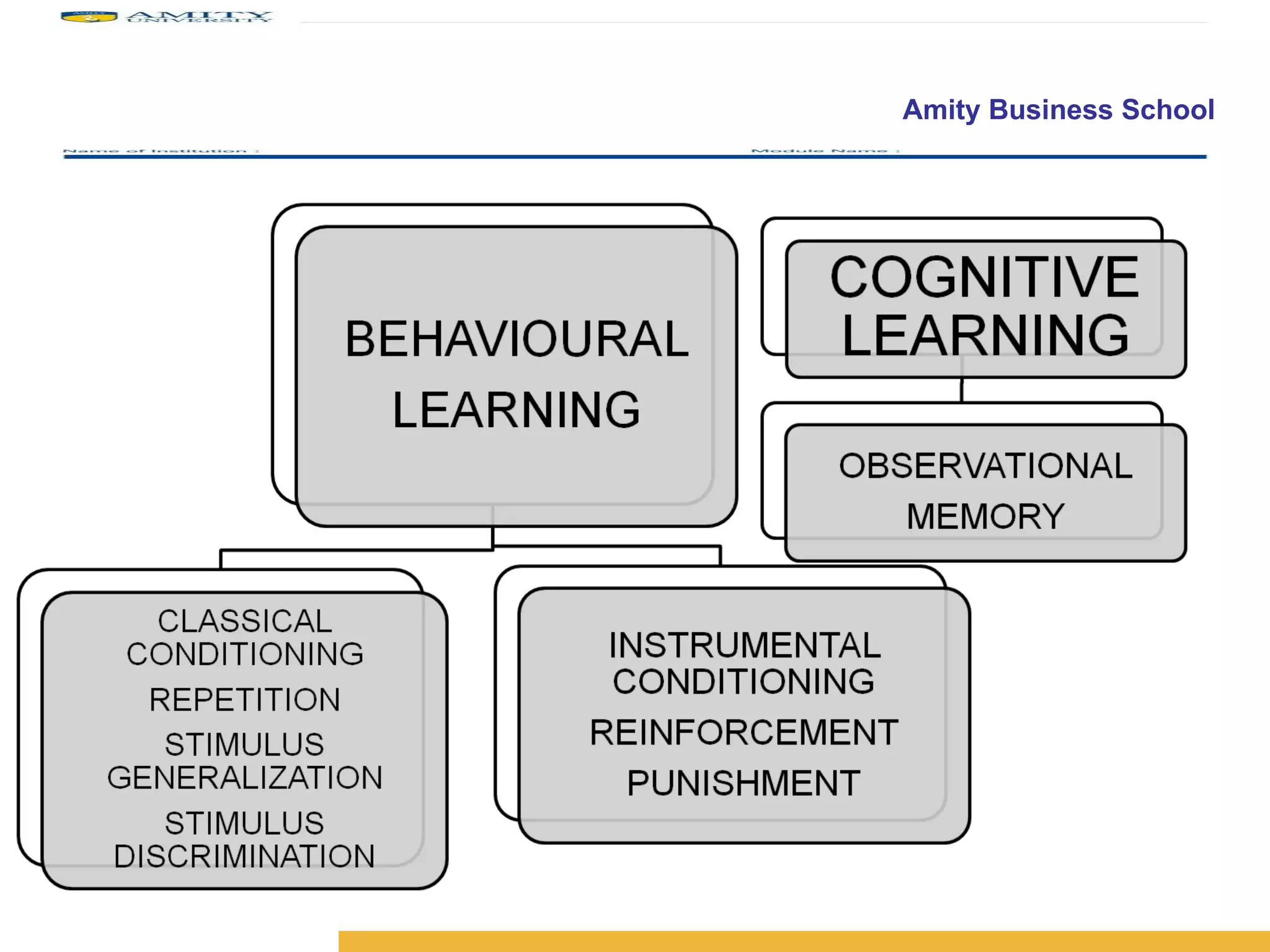 The document discusses different types of consumer learning, including behavioral learning and cognitive learning. Behavioral learning involves observable responses to external stimuli and can occur through classical conditioning, operant conditioning, and reinforcement. Cognitive learning focuses more on internal mental processes and can happen through observational learning and different memory processes. The key aspects of consumer learning are that it is a relatively permanent change in behavior caused by experience, it is an ongoing process, and marketers must teach consumers about products.