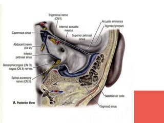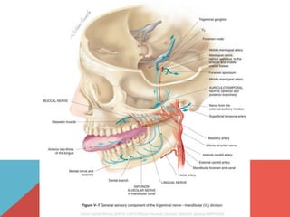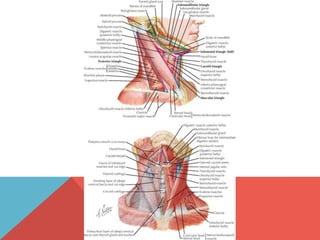 This document provides terminology and descriptions related to the anatomy of the head and neck. It discusses the compartments of the cranial cavity, orbits, ear, nose, and oral cavity. It then describes the deep muscular, visceral, and carotid sheath compartments of the neck. Finally, it lists synovial joints in the head including the temporomandibular joint, atlanto-occipital joints, and interossicular joints of the middle ear.