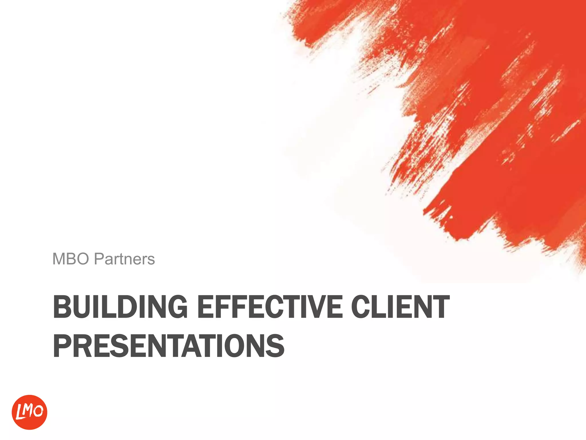 The document discusses effective strategies for client presentations, focusing on body language, vocal variety, rehearsal, and the use of visual aids. It emphasizes the importance of clear communication, audience engagement, and preparation, outlining practical tips for structuring presentations. Additionally, it provides resources for further learning and tools to enhance presentation quality.
