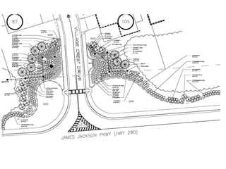 The document provides information about three landscape architecture projects: