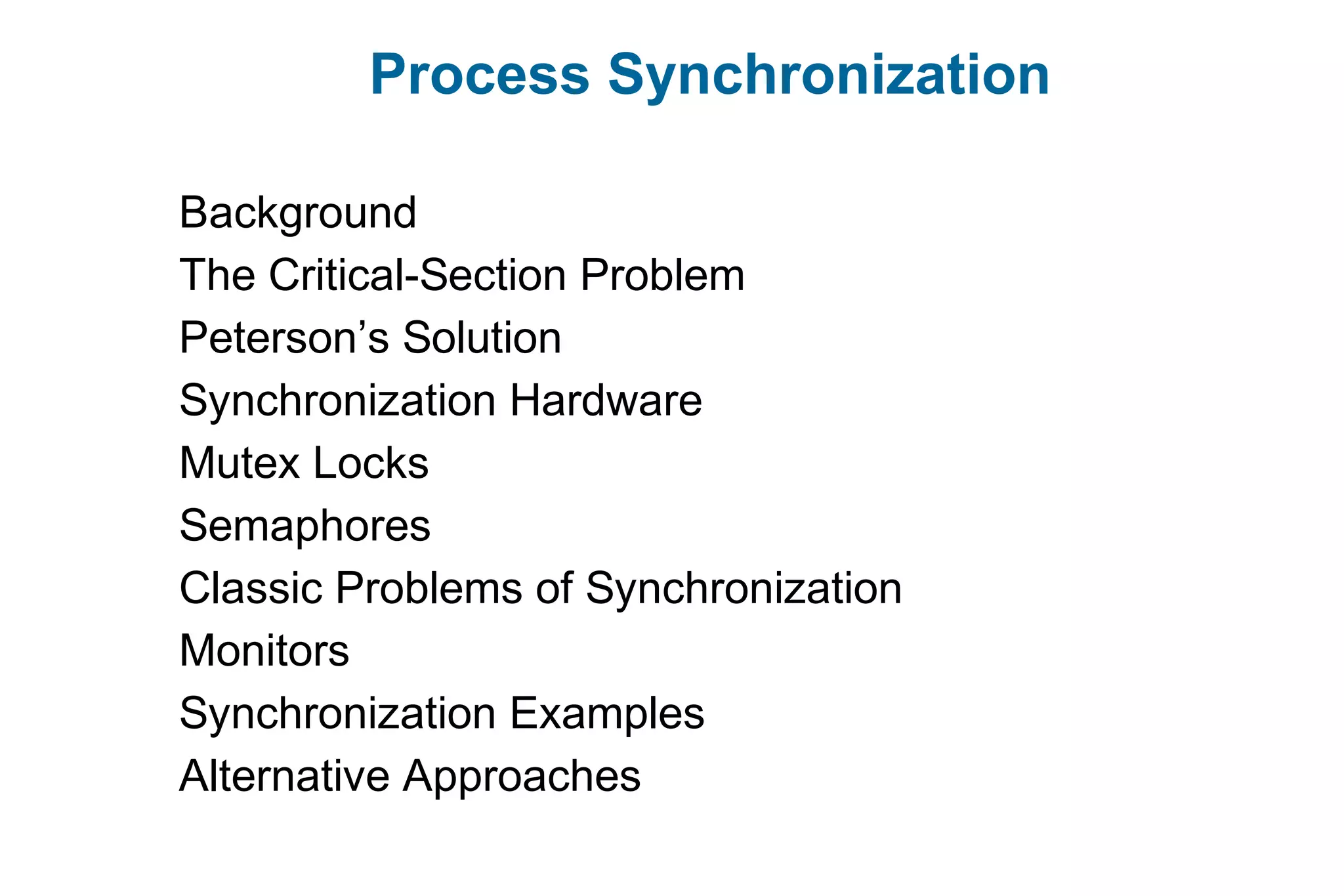 This document discusses various techniques for process synchronization and concurrency control in distributed systems. It begins by introducing classical problems like the bounded buffer problem and solutions like semaphores. It then covers monitors and condition variables as higher-level synchronization constructs. Various examples of synchronization in real systems like Solaris, Linux, and Windows are provided. The document concludes with a discussion of techniques to ensure atomic transactions in the presence of failures, including log-based recovery, checkpoints, and concurrency control protocols like two-phase locking and timestamp ordering.
