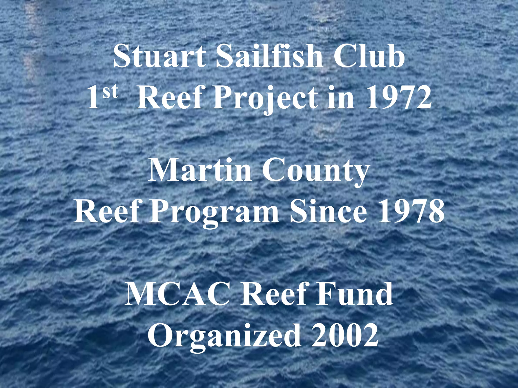 The document summarizes Martin County's artificial reef program, which began in 1972 and has since constructed 61 reefs. It describes several of the named reef sites, honoring retired members of the Stuart Sailfish Club who advocated for artificial reefs. These include reefs named for Bill Donaldson, Captain Al Sirotkin, and Dr. Edgar Ernst. It provides details on recent reef projects, including the deployment of vessels to expand reef sites further offshore. Funding comes from activities like an annual fishing tournament and selling naming rights to existing and future reef sites.