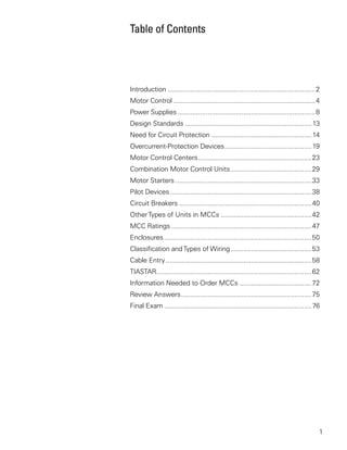 Motor control centers (MCCs) are groupings of combination motor starters in a single assembly. MCCs allow for centralized control of multiple motors from a single location. They provide advantages like faster installation, neat appearance, ease of modifications, and generally less space required compared to individual motor starters. Power is typically supplied to MCCs from large AC generators that produce three-phase voltage at utilities standard frequencies like 60Hz in the US.