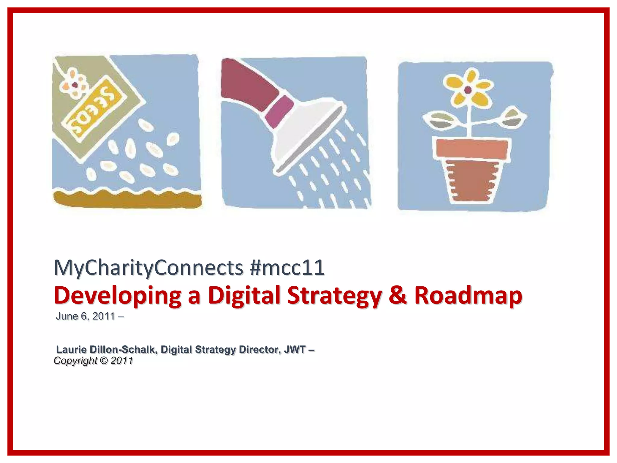 The document outlines a comprehensive digital strategy and roadmap developed by Laurie Dillon-Schalk, focusing on enhancing online objectives through effective digital media use. It emphasizes the importance of conducting a digital review, understanding customer experiences, and aligning organizational goals with digital strategies. Key components include assessing current digital assets, addressing consumer needs, and planning for rapid technological changes.