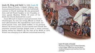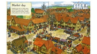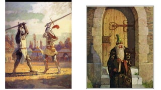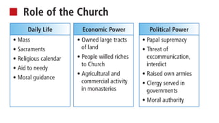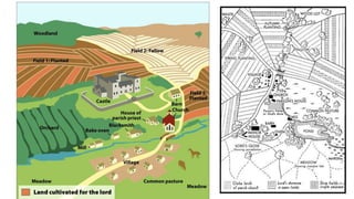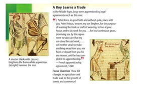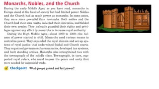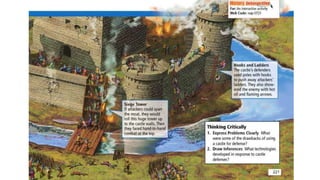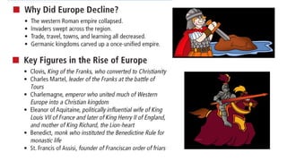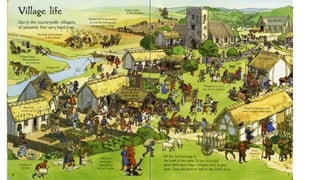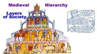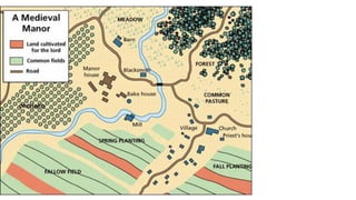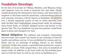 The passage describes medieval European society and the emergence of feudalism. Peasants worked lands owned by lords in exchange for protection, and serfs were bound to the land. In response to invasions and weak kings, a system of feudalism developed where greater lords divided their lands among lesser lords who pledged loyalty in exchange. Warfare was common and many boys trained from a young age to become knights.