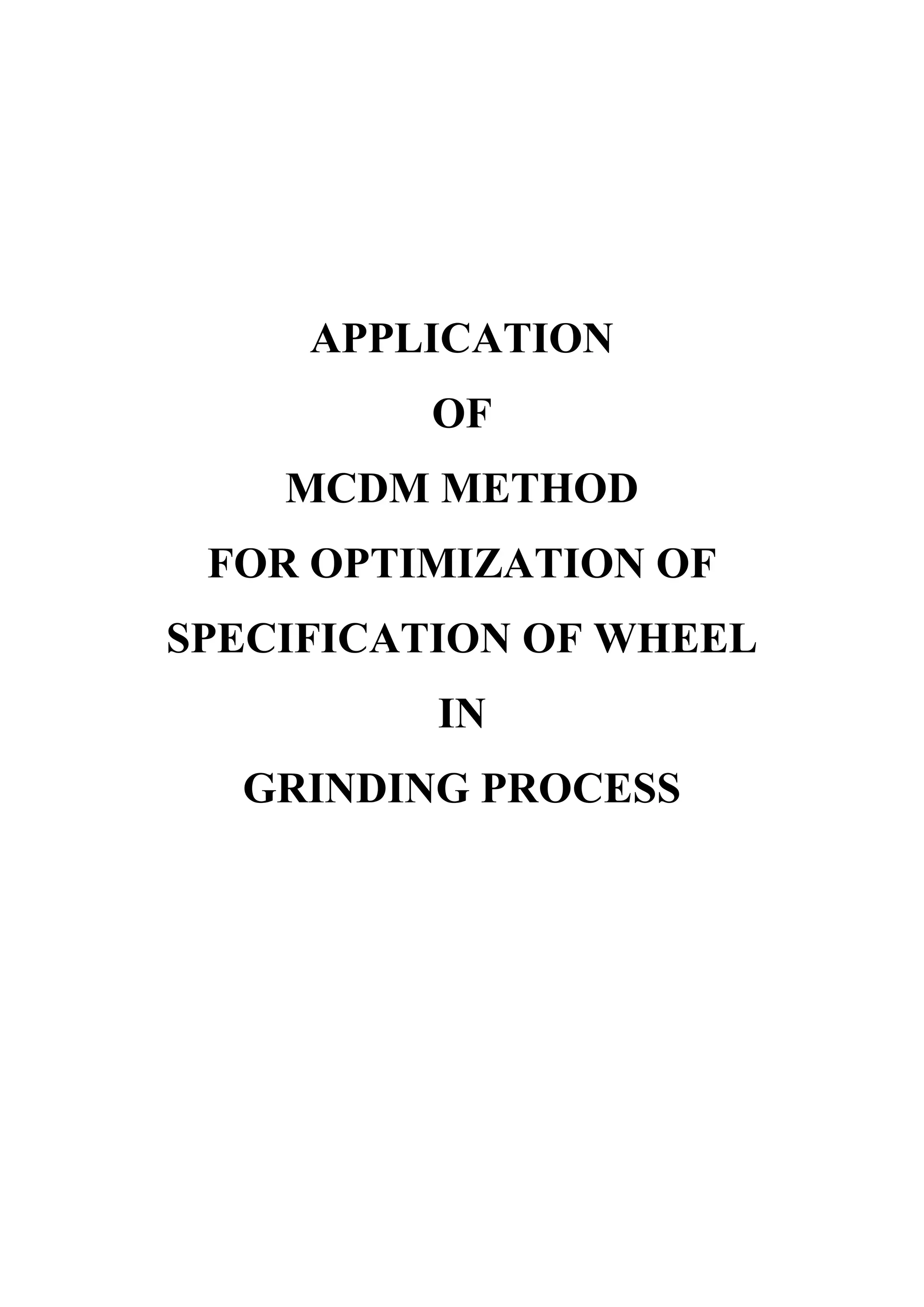 1) The document proposes an intelligent multi-criteria decision making (MCDM) method for optimizing the specification of a grinding wheel. It involves defining evaluation criteria, screening MCDM methods, evaluating them based on the criteria, and selecting the most suitable method.