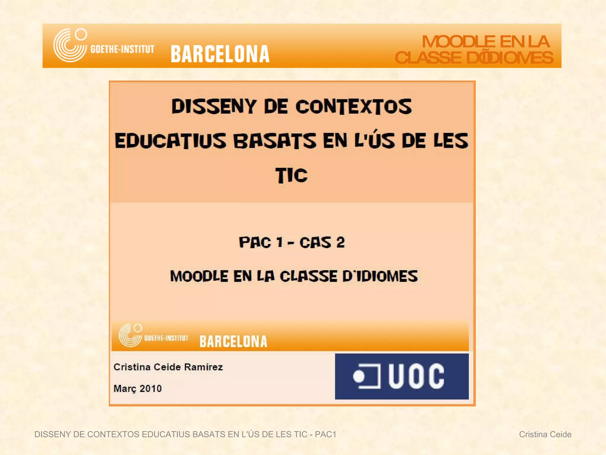 MOODLE EN LA CLASSE D’IDIOMES DISSENY DE CONTEXTOS EDUCATIUS BASATS EN L'ÚS DE LES TIC - PAC1 Cristina Ceide