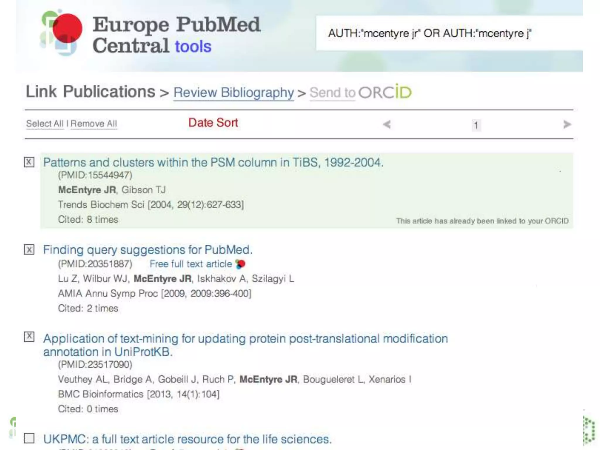 This document provides an overview of Europe PubMed Central, a repository for life science literature built in collaboration with PubMed Central USA and Canada. It contains over 28 million abstracts and 2.5 million full text articles, with 600k open access articles. The document outlines reasons to use Europe PMC including integrated searching of abstracts and full text, semantic enrichment of text, and citation linking. It also discusses providing credit for authors, funders, and data through features like author search and linking publications to ORCID profiles. Tools are being developed for database curators to monitor when data is cited in articles.