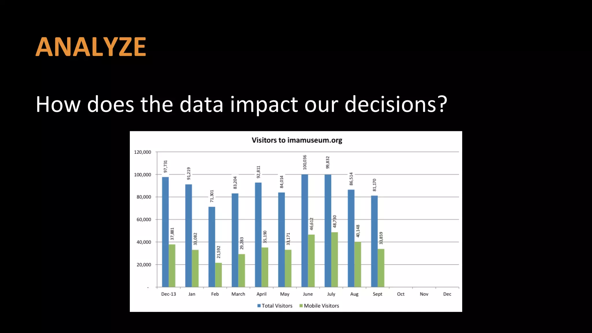The document focuses on methods of analyzing visitor data and the importance of balancing quantitative analytics with human intuition. It discusses statistical significance, testing hypotheses, and the use of content analysis to derive conclusions from visitor behavior across different languages and tours. The approach emphasizes iterative testing, such as A/B testing, to inform changes and improve visitor engagement.