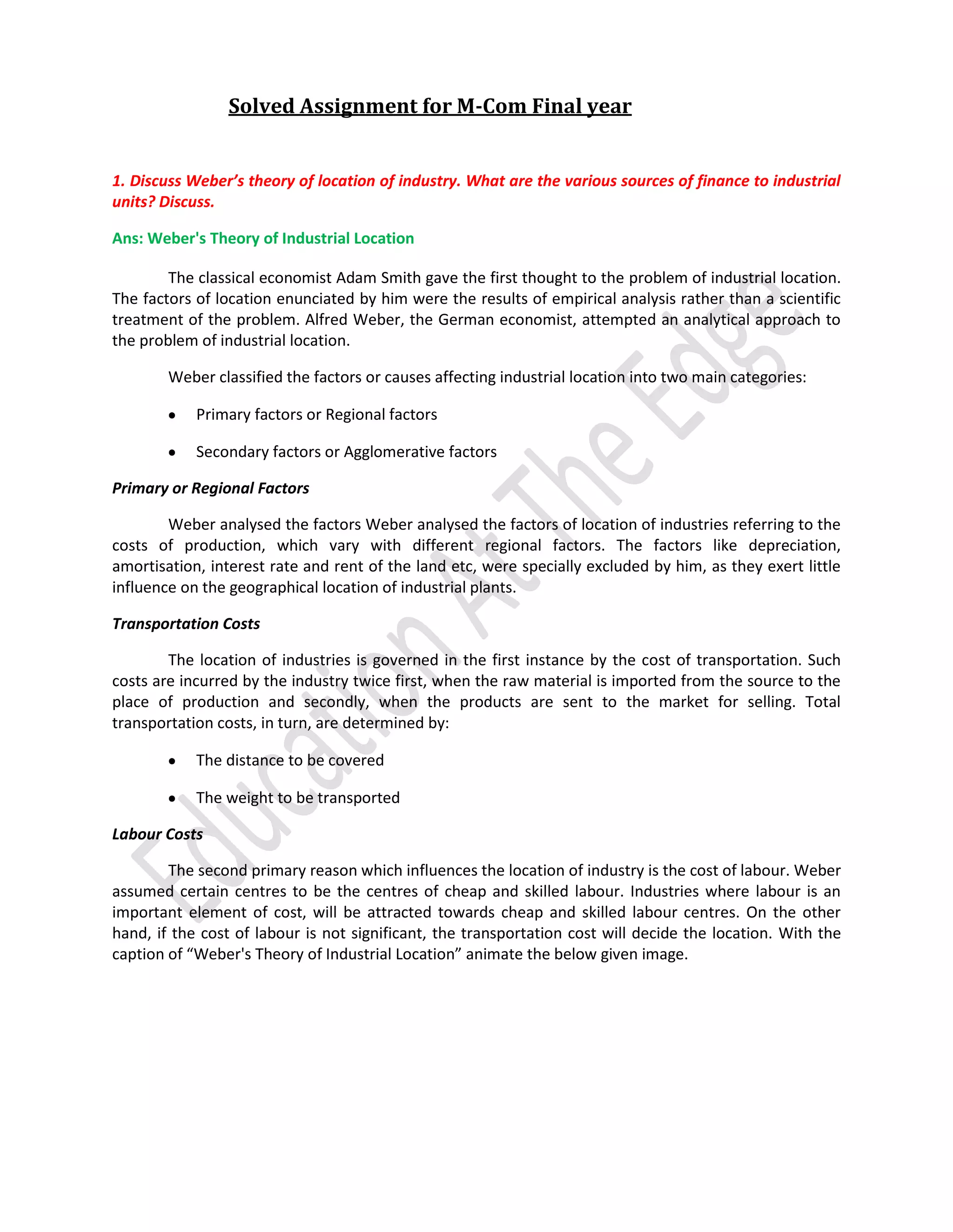 The document discusses Weber's theory of industrial location, emphasizing primary and secondary factors influencing industrial placement, particularly transportation and labor costs. It outlines various sources of industrial finance in India, including organizations like IDBI, ICICI, and SIDBI, which provide diverse financial support for industrial development. Additionally, it covers concepts of micro, small, and medium enterprises (MSMEs) and details the role of management accounting techniques in aiding managerial decisions.