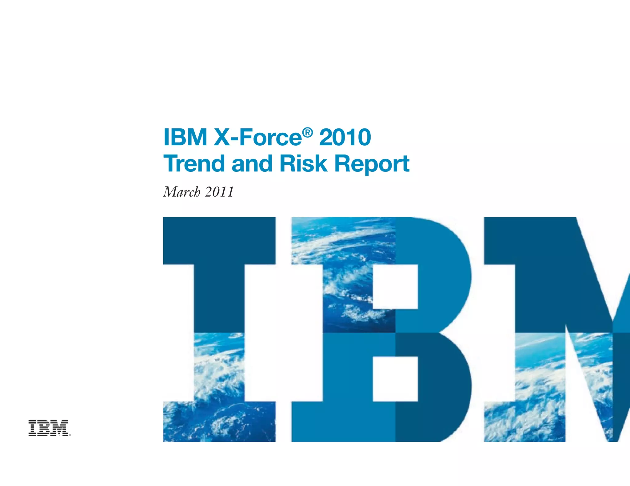 This document is the IBM X-Force 2010 Trend and Risk Report contributed to by many IBM researchers and analysts. It provides a summary of major cybersecurity trends and threats observed over 2010, including advanced persistent threats, targeted attacks, vulnerabilities, malware trends like Stuxnet, and recommendations for operating secure infrastructure and developing secure software. It also covers emerging security trends observed by IBM that may impact 2011 and beyond.