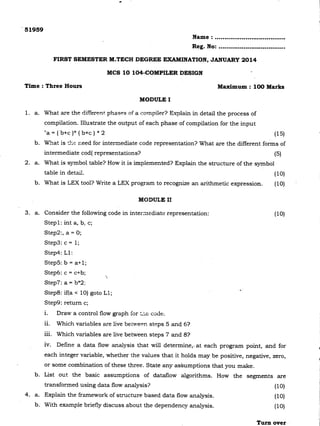 This document appears to be an exam for a Compiler Design course, covering four modules: