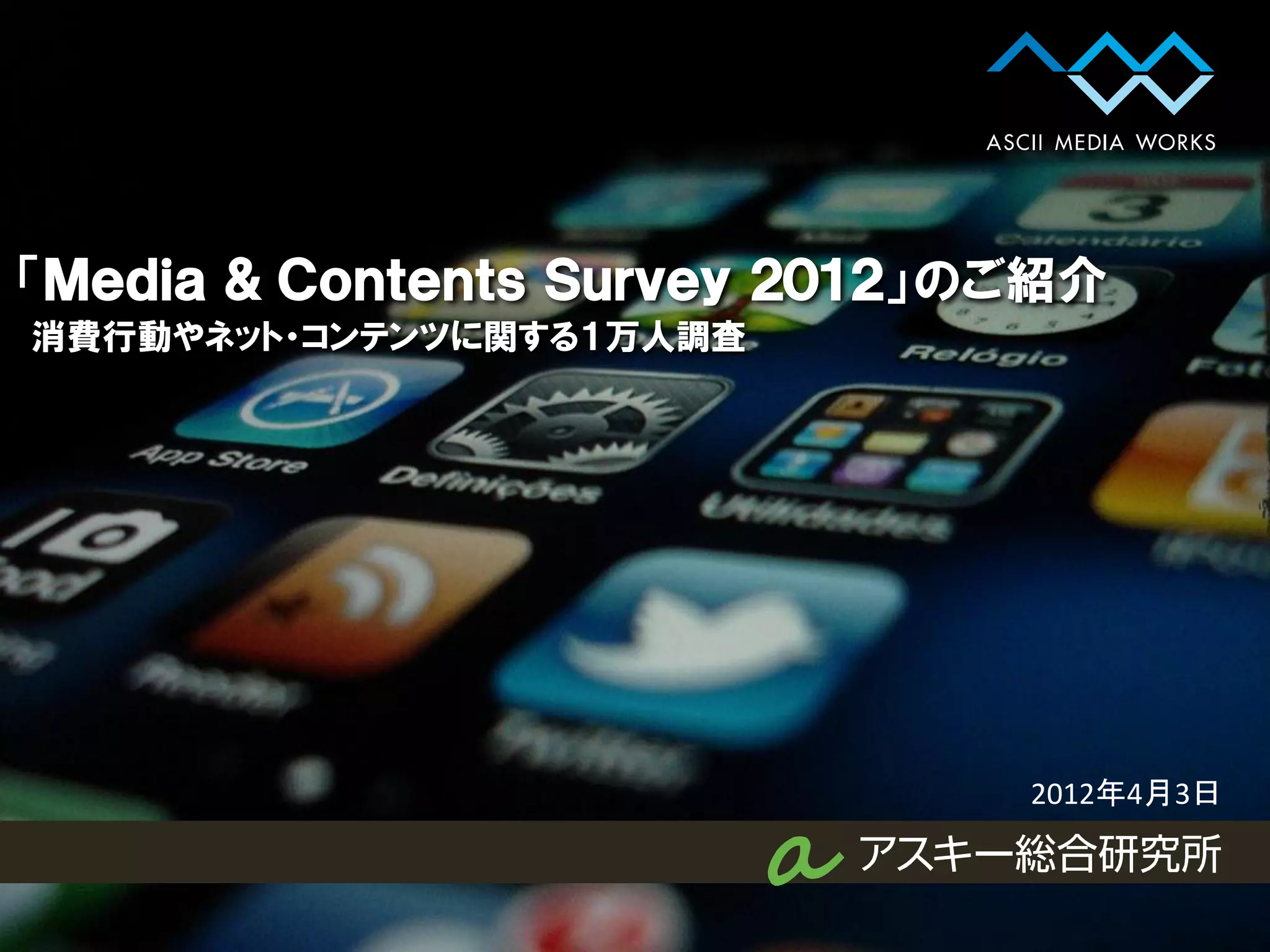 Survey 2012」 のご紹介 消費行動やネット・コンテンツに関する1万人調査 2012年4月3日