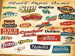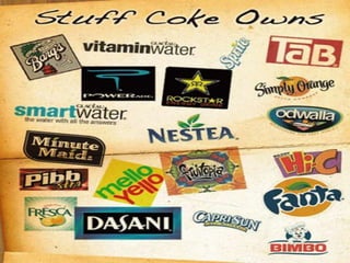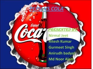 The document discusses the history and strategies of Pepsi and Coca-Cola in their competition, known as the "Cola Wars". It provides background on the founding and growth of each company over the decades. Pepsi struggled early on and declared bankruptcy twice, while Coca-Cola saw steady growth. Both companies established nationwide bottling networks and used franchising agreements with bottlers. The document also analyzes the companies' market share and strategies over time in competing for consumers in the liquid refreshment beverage industry.