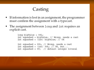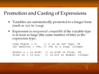 - Using operators and ensuring legal assignments of primitive types