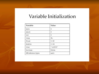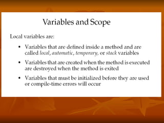 - Distinguishing between instance and local variables and how instance variables are initialized