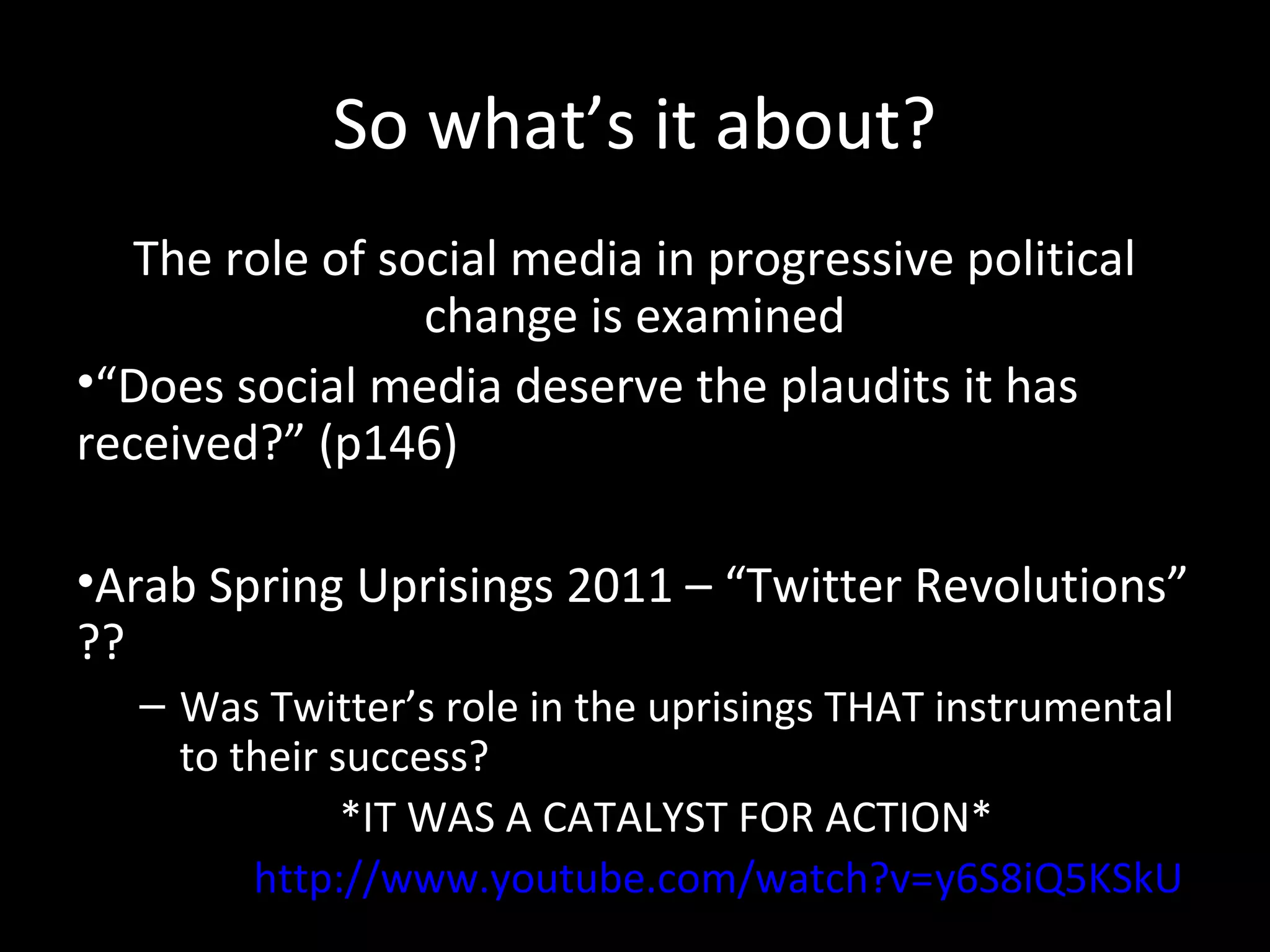 The document examines the role of social media in political change and human rights. It discusses both perspectives that see social media as a catalyst for activism during events like the Arab Spring, allowing eyewitness accounts to spread, as well as perspectives that see it as "slactivism" that distracts from real activism. The document also notes social media can be used for government oppression but may also have unprecedented benefits by connecting people globally for activism.