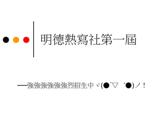 明德熱寫社第一屆 ──強強強強強強烈招生中ヾ(●´▽`●)ノ!