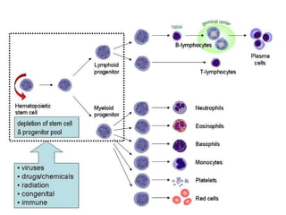 Myelodysplasia, also known as myelodysplastic syndrome (MDS), is a heterogeneous group of hematopoietic stem cell disorders that results in ineffective hematopoiesis and cytopenias. MDS is primarily seen in elderly patients and has a risk of progression to acute myeloid leukemia. Characteristic features include increased marrow proliferation, failure of stem cells to differentiate, and increased marrow apoptosis. Cytogenetic abnormalities are detected in 30-70% of patients and correlate with risk of progression. Treatment may include stem cell transplant, DNA methyltransferase inhibitors, immunotherapy, and chemotherapy.
