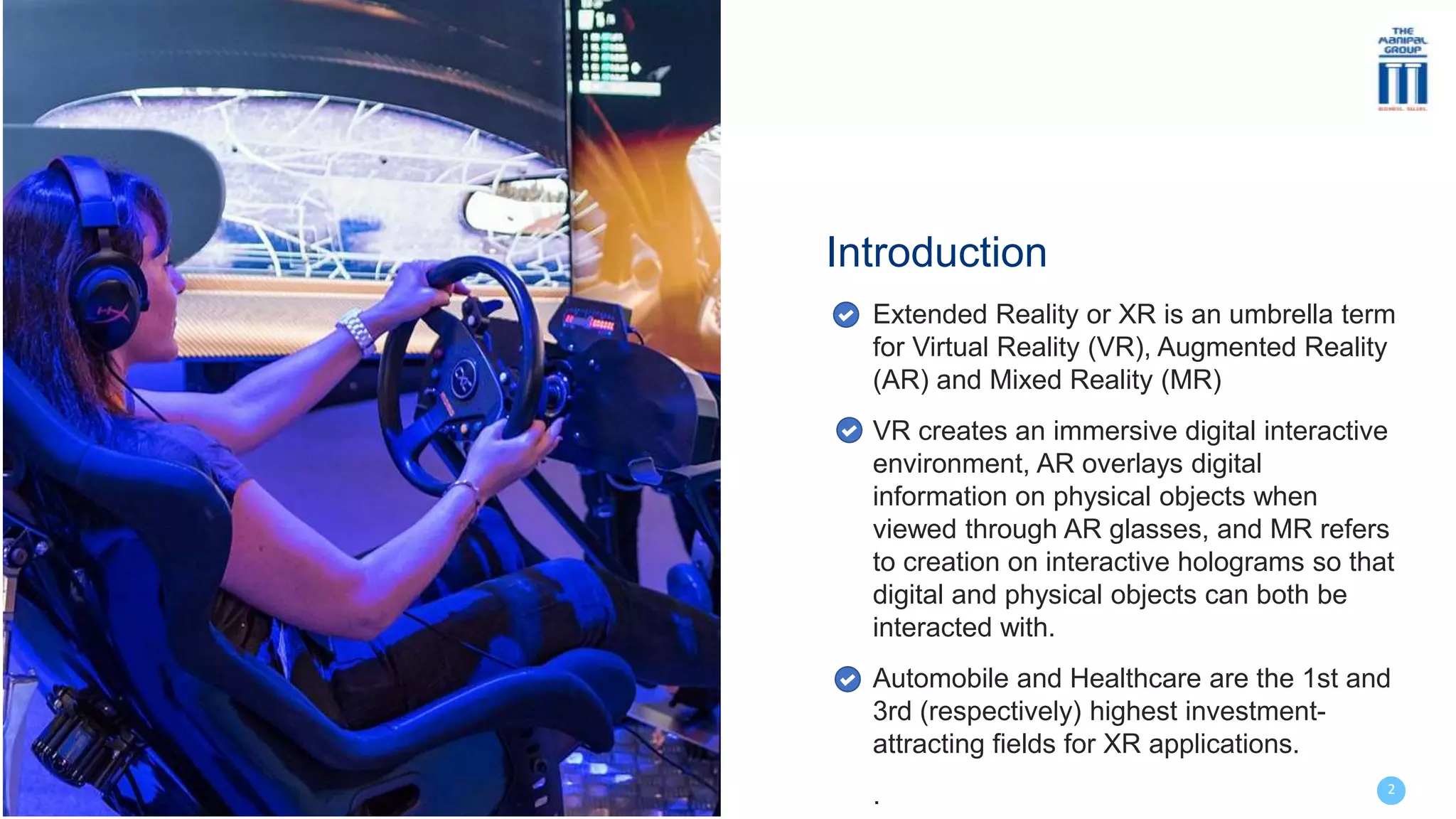 Extended reality (XR), encompassing virtual reality (VR), augmented reality (AR), and mixed reality (MR), is increasingly applied in both the automobile and healthcare sectors. In the automotive industry, XR enhances processes from manufacturing to customer interaction, offering immersive experiences for customization and virtual test drives, while in healthcare, it aids in training through simulations and detailed anatomical studies. The document highlights the growing importance of XR in fostering engagement and improving education within these fields as it integrates with industry advancements.