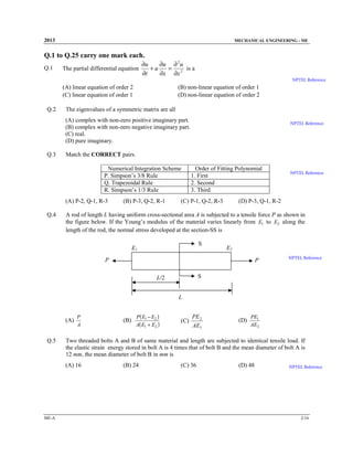 3) The questions cover topics in mechanical engineering as well as a general aptitude section worth a total of 15 marks.