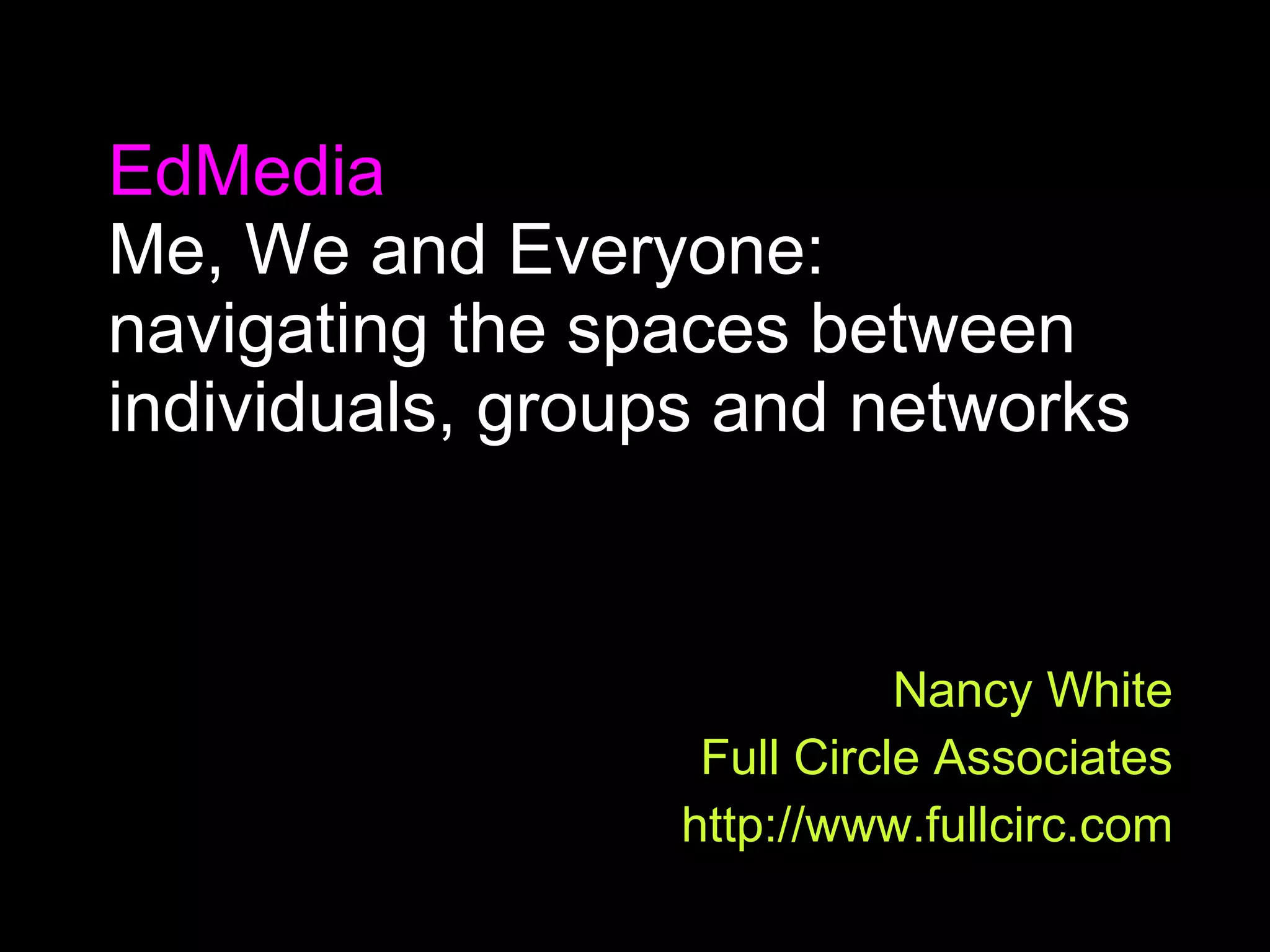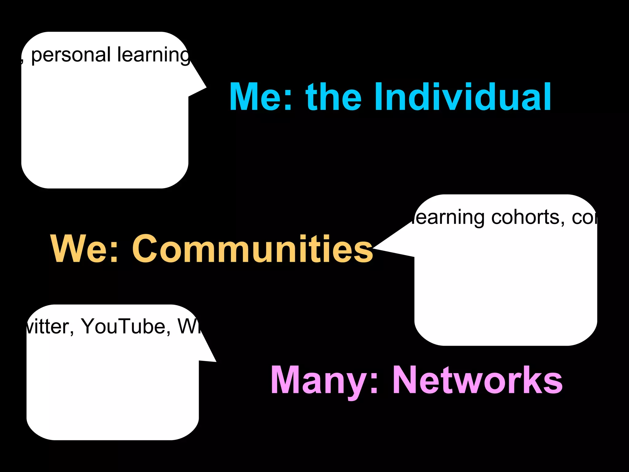 This document discusses how individuals, groups, and networks interact using technology. It explores the continuum between an individual's personal identity and interests and their participation in larger communities and networks. It suggests that technology allows people to be together in new ways, and encourages considering how to best support individuals, groups, and networks through practices like facilitating participation, cultivating relationships, and enabling content sharing.