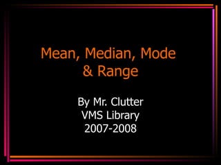 This document defines and provides examples for calculating the mean, median, mode, and range of data sets. It explains that the mean is the average found by adding all values and dividing by the number of values. The median is the middle value of a sorted data set. The mode is the most frequently occurring value. The range is the difference between the highest and lowest values. Examples are provided to demonstrate calculating each measure for various data sets.