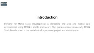 The document highlights the increasing demand for MEAN stack development for web and mobile applications, emphasizing its stability and security. It explains the MEAN stack as a set of JavaScript technologies that provide a complete development toolkit for creating fast and reliable web applications. Additionally, it promotes MEAN stack training courses offered by Aptron Noida to advance careers in web development.