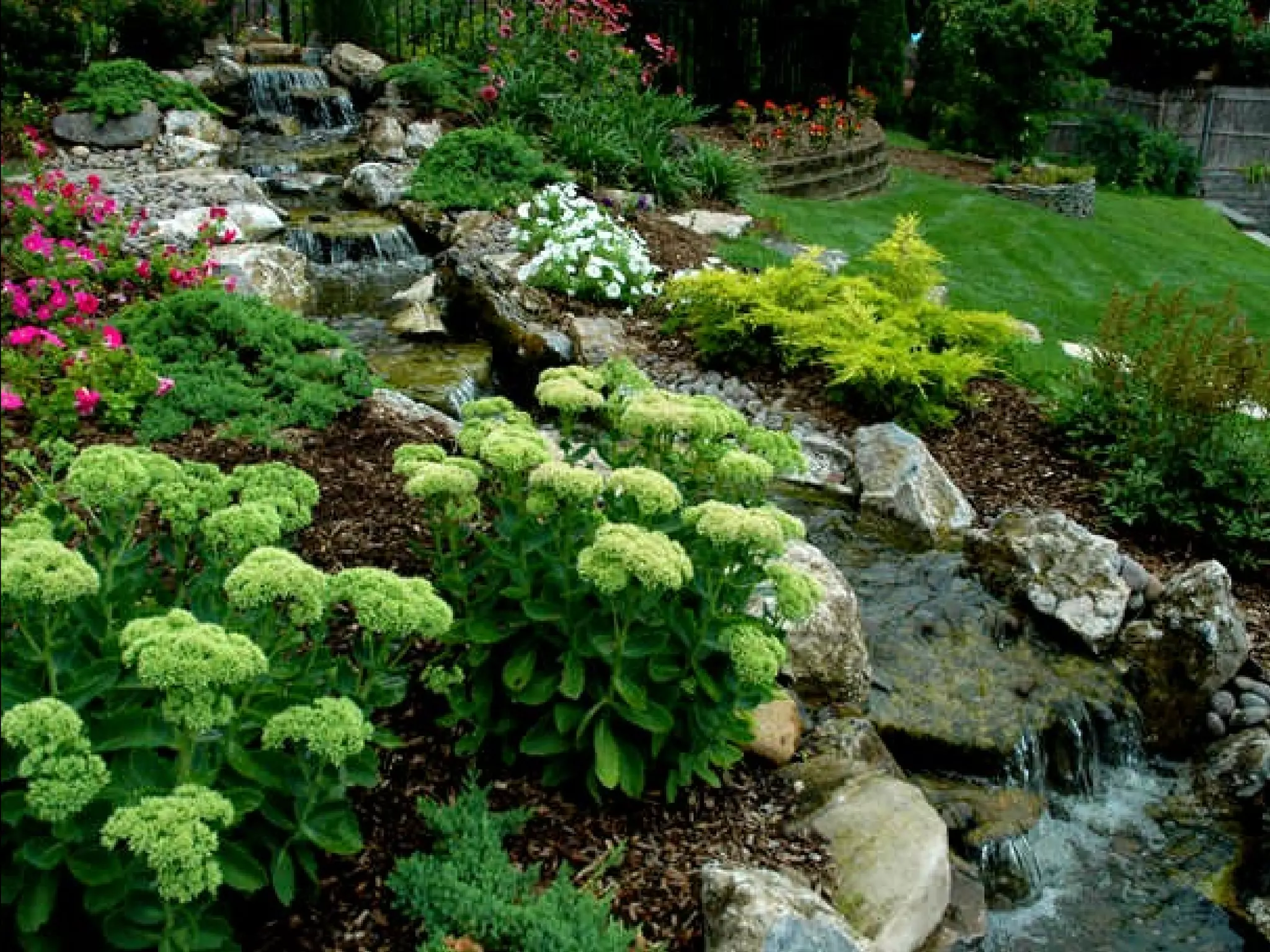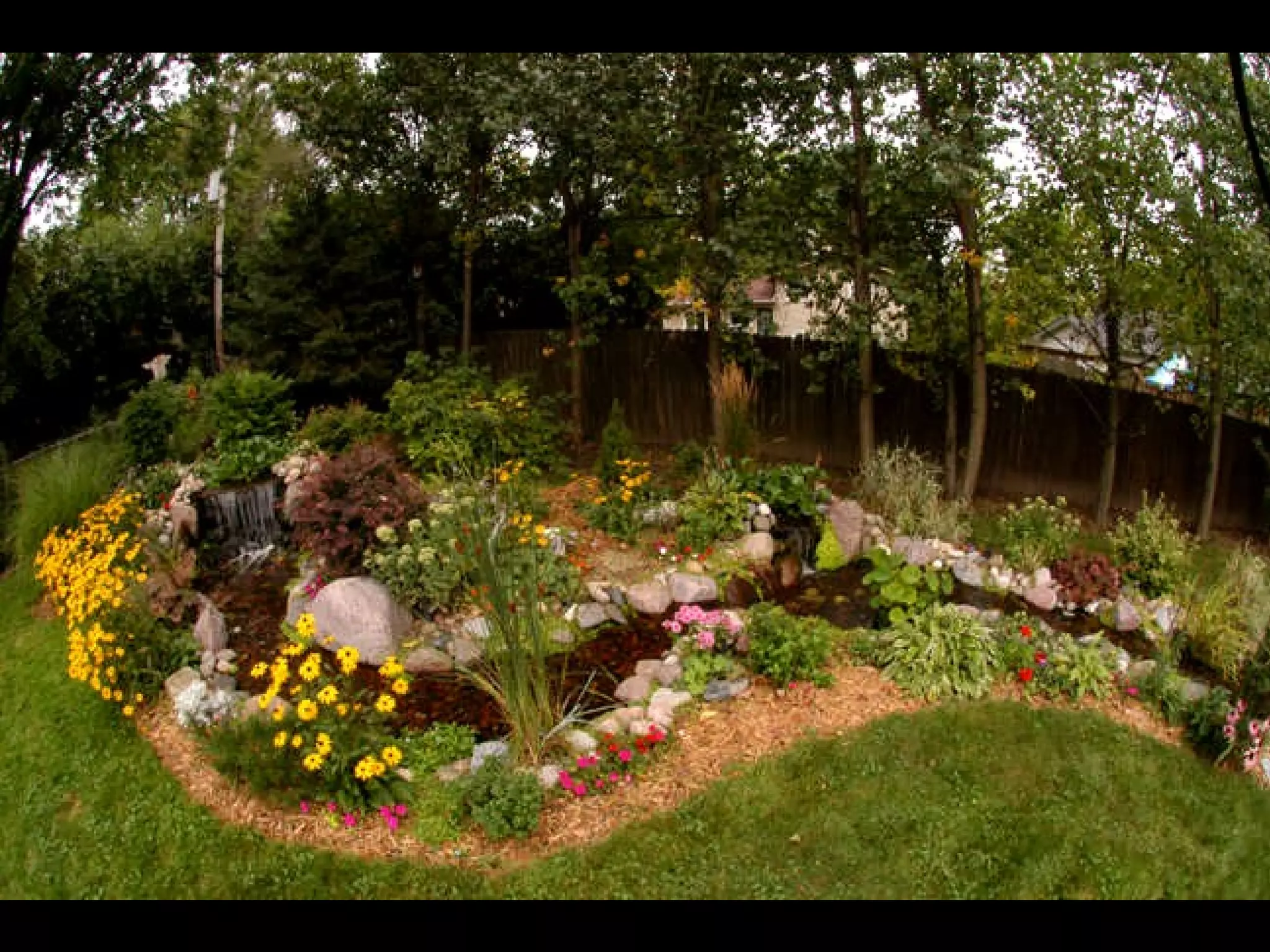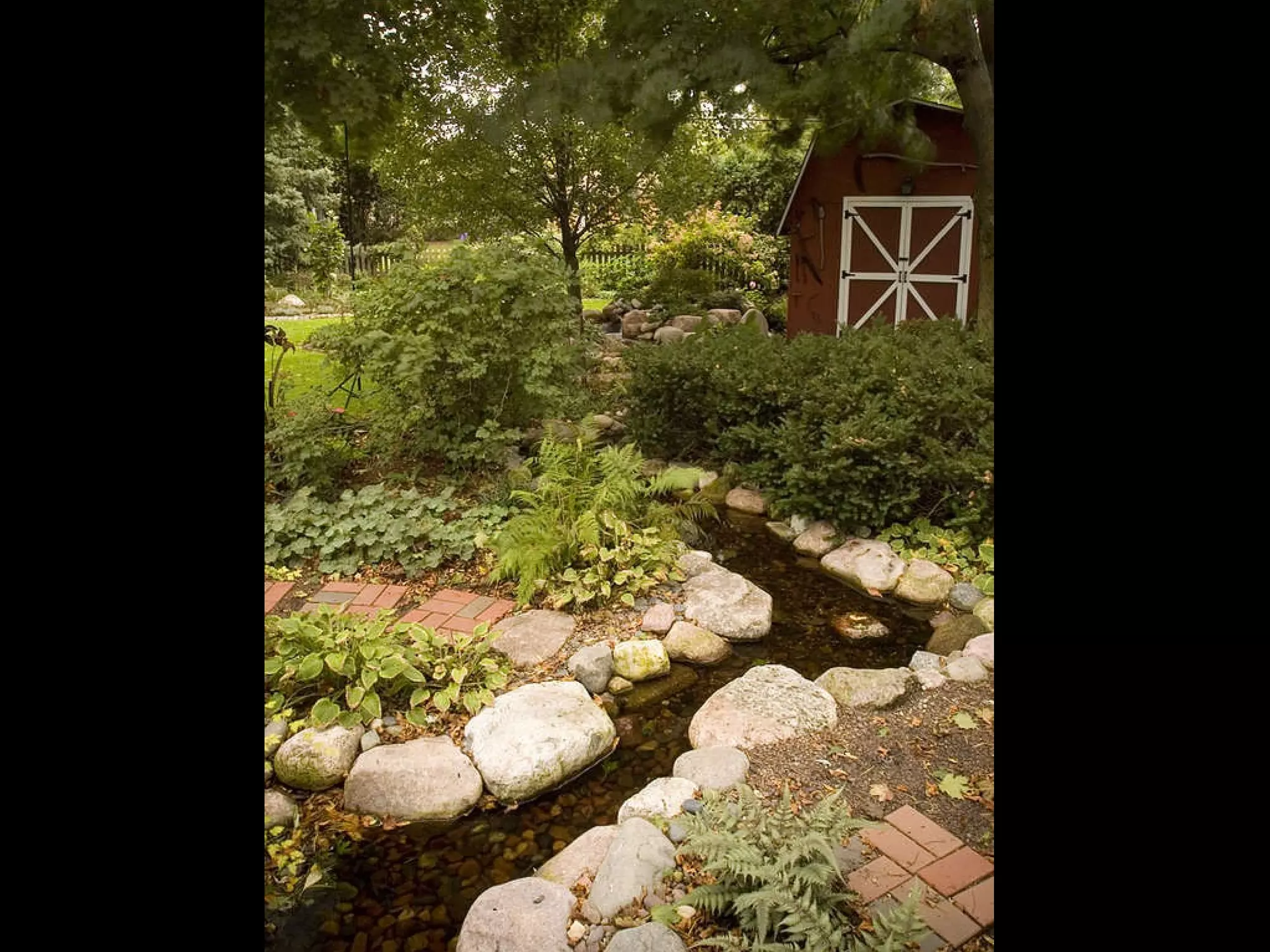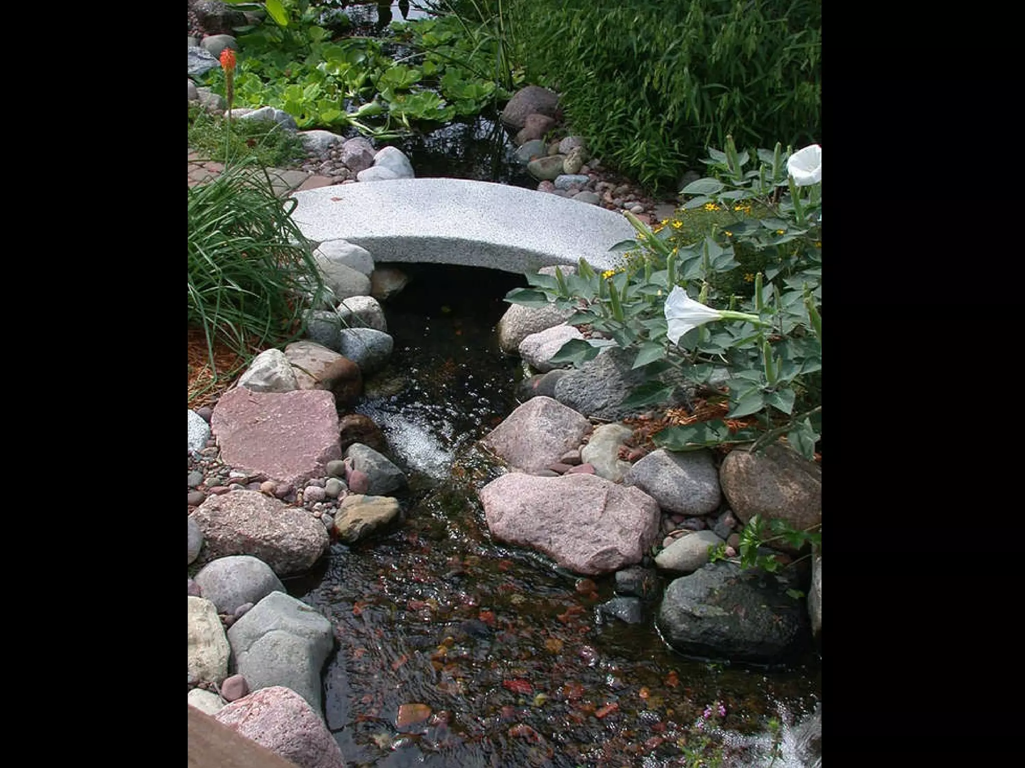 The document provides information about Aquascape, a company located at 901 Aqualand Way, St. Charles, IL 60174. It features content related to meandering streams in landscaping. The primary focus is on products and services offered by Aquascape.