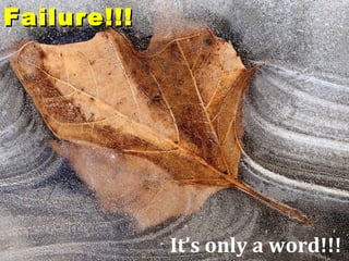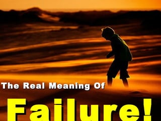 Failure is often seen as negative but it can be a teacher. It shapes and refines people so their light can shine for others. While failure is painful, the steps taken after are what define a person's destiny. The document advocates accepting failure as everyone fails sometimes, and using failure as an opportunity to attempt more, be more interested, learn more, understand more, revise more, and evaluate more. True growth comes from learning from mistakes.