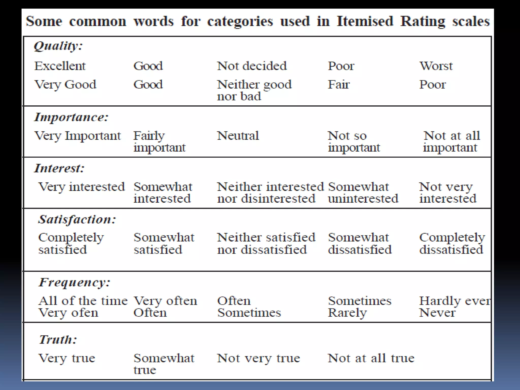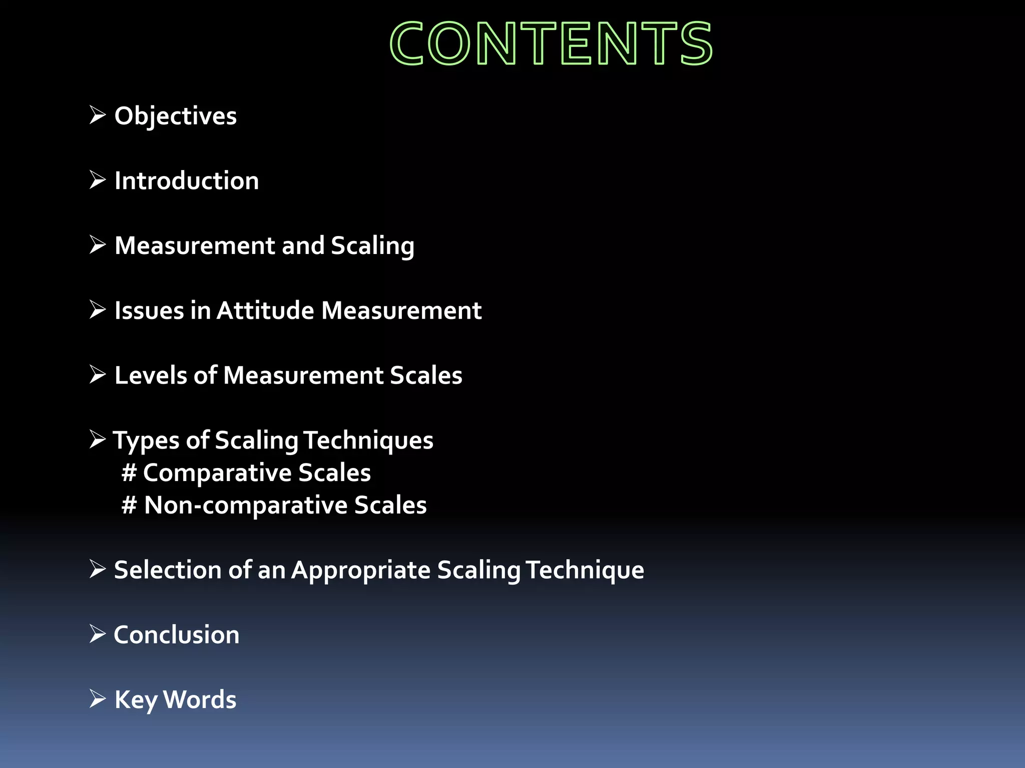 This document discusses measurement and scaling techniques used in research. It defines measurement as observing and recording observations according to rules, while scaling is assigning objects to numbers or categories by rule. There are four levels of measurement: nominal, ordinal, interval, and ratio scales. Nominal scales use numbers as labels, ordinal scales show ranking, interval scales have equal distances between numbers, and ratio scales have a true zero point. Comparative scales like paired comparisons or ranking ask respondents to directly compare objects, while non-comparative scales like Likert or semantic differential scales rate single objects independently. The appropriate scale depends on the research problem and data type.