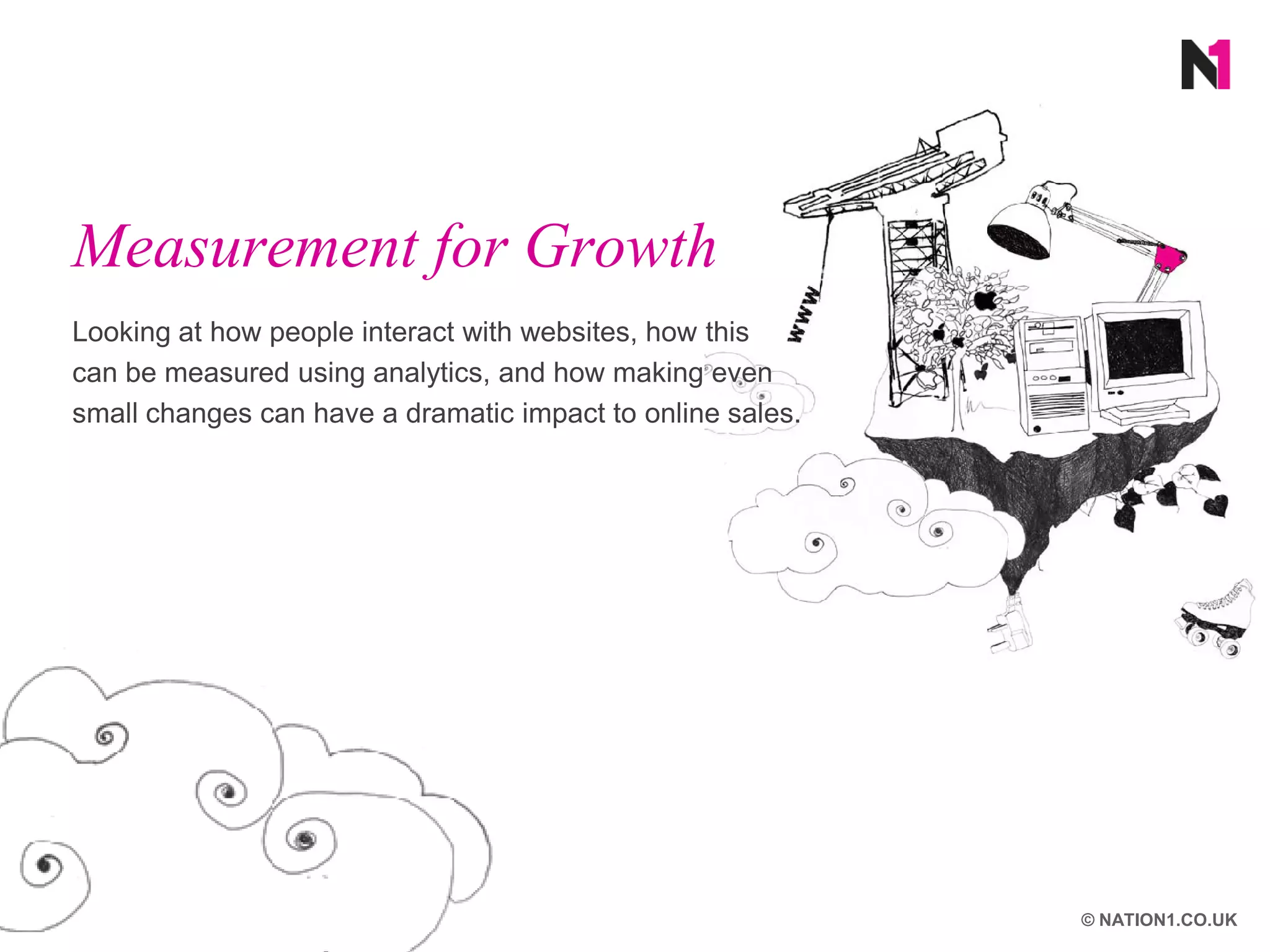 The document discusses how website analytics can be used to measure user interactions and the impact of small changes on online sales. It provides examples of measuring different marketing campaigns and comparing their unique visitors, time on site, goal conversions, and cost per acquisition. The document advocates testing different page designs and elements using tools like Google Website Optimizer to directly ask customers through live experiments which versions perform better rather than relying only on opinions. This allows moving from opinion-based to data-based decision making.