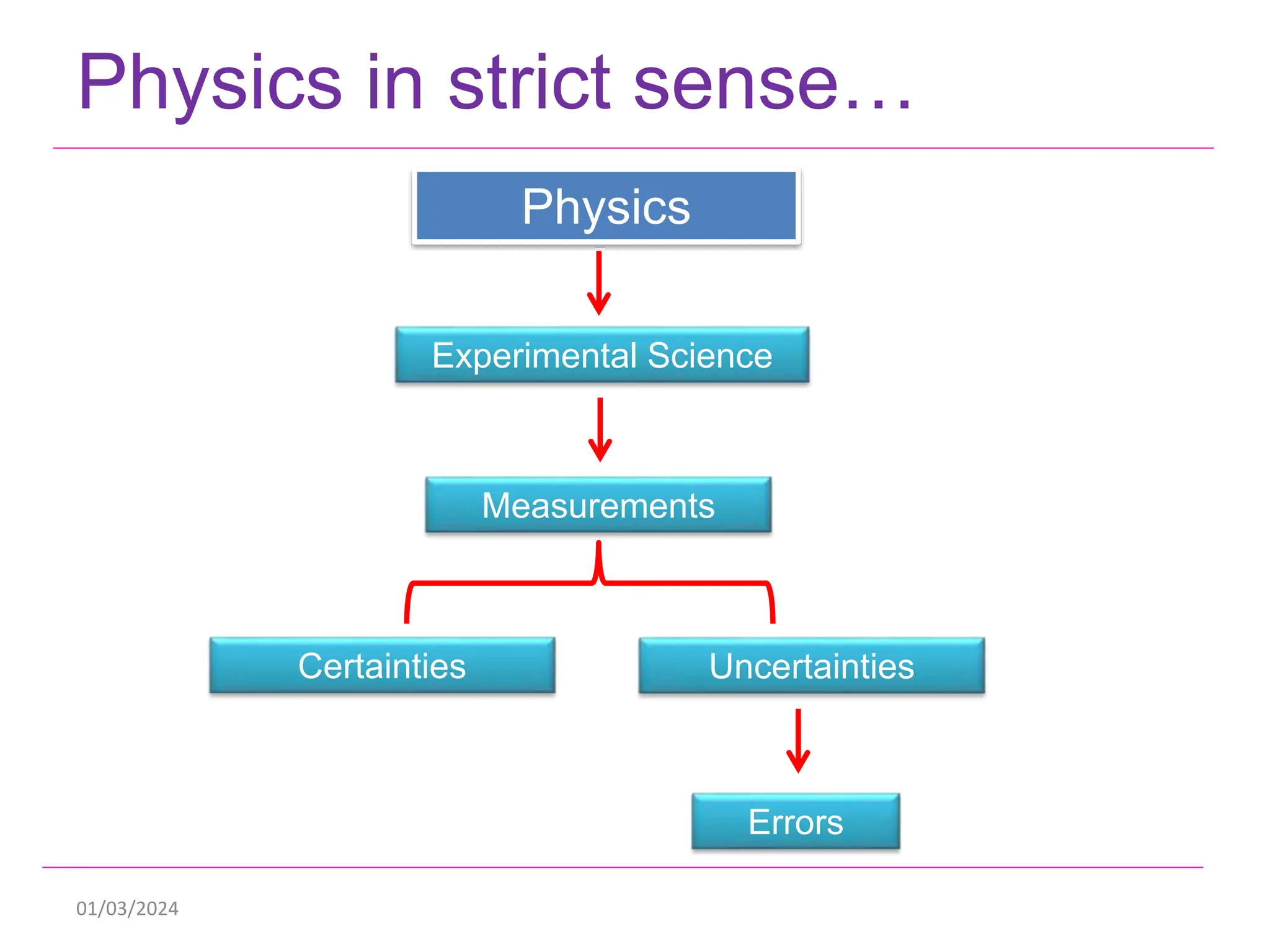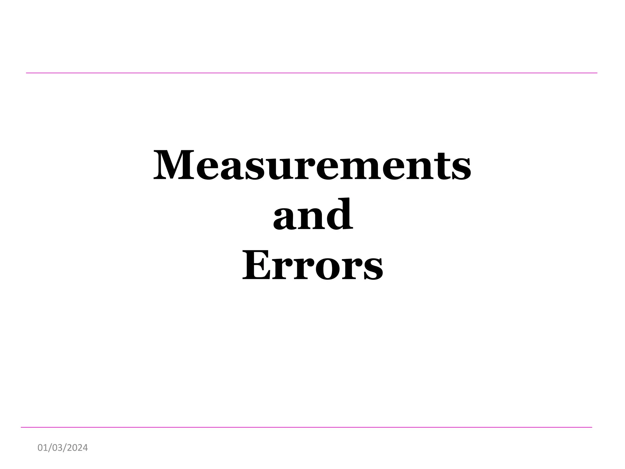 This document discusses measurements, errors, and precision vs accuracy in experimental science. It describes two main types of errors: random errors which are inevitable but can be minimized, and systematic errors which can be eliminated. Random errors result from unpredictable variations and can be reduced by taking multiple independent measurements. Systematic errors are associated with issues like improper instrument calibration, use of the wrong equipment or procedures. The document also explains that precision refers to the reproducibility of measurements but does not guarantee accuracy, which is defined as closeness to the true value.