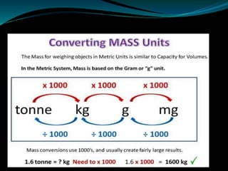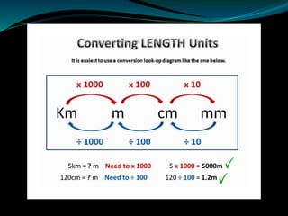 Measurement involves comparing an unknown physical quantity to a known standard of the same type. Physical quantities that can be measured include length, mass, time, temperature, and electric current. The International System of Units (SI) provides standard units that are used universally, with length measured in meters, mass in kilograms, and time in seconds. Measurement systems include the centimeter-gram-second (CGS) system, foot-pound-second (FPS) system, and meter-kilogram-second (MKS) system. Fundamental units are independent units like length, mass and time, while derived units are obtained from fundamental units, such as area from length and volume from length and width.
