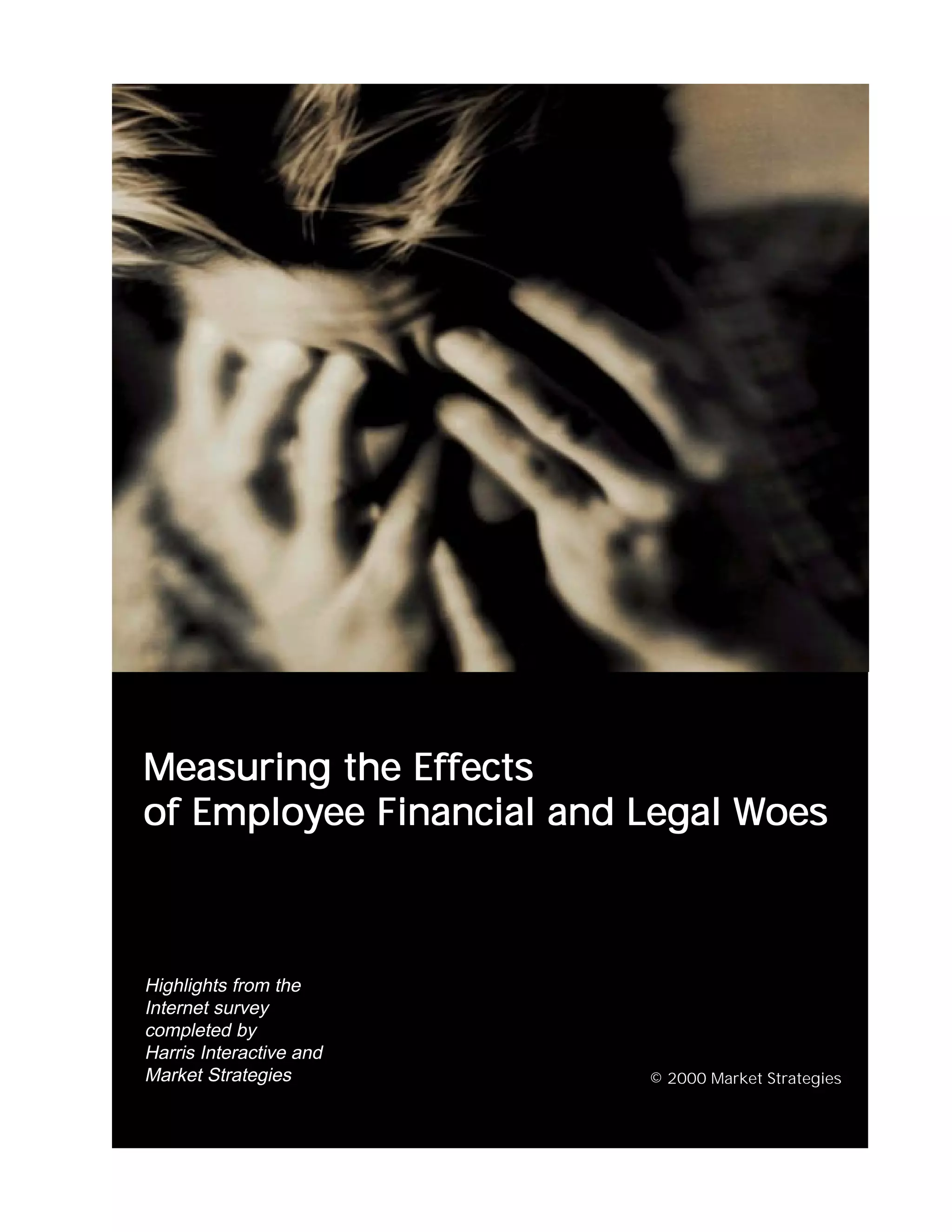 The document discusses the results of a survey measuring the effects of employee financial and legal issues. It finds that: