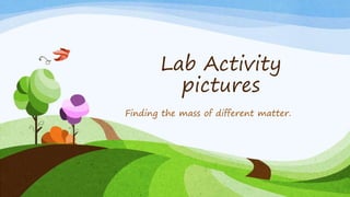 Students conducted a lab activity where they measured the mass of different materials. They took pictures as part of documenting the experiment. The goal was to find the mass of various matter by directly measuring it.