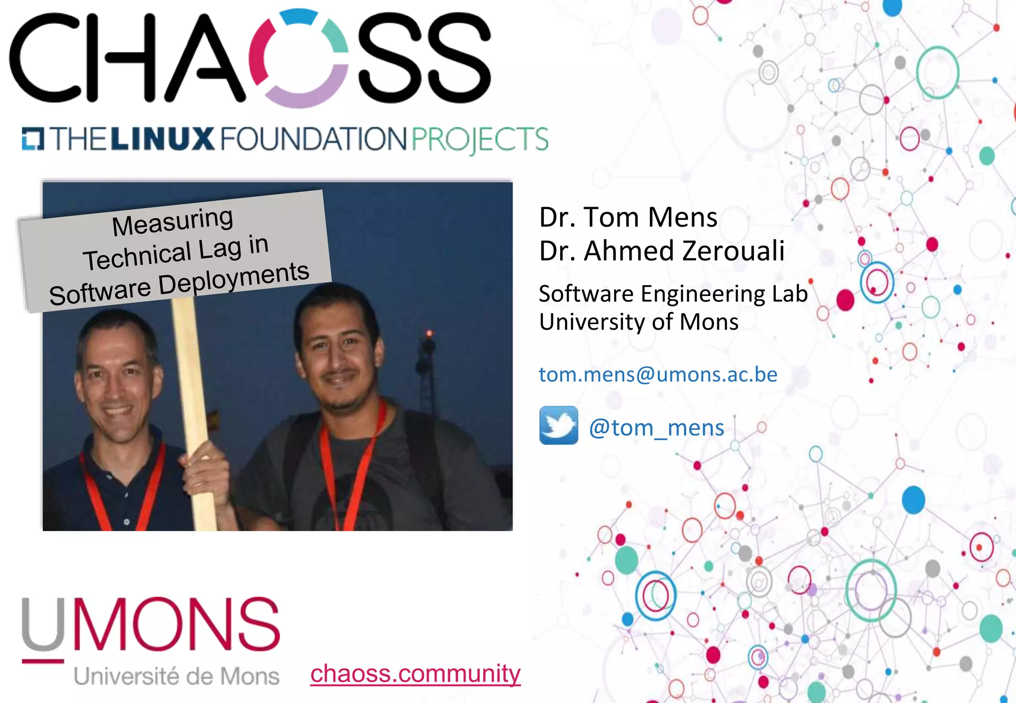 The document discusses the concept of technical lag in software, which measures the difference between deployed software packages and their ideal counterparts, highlighting its significance in various contexts such as software deployment and package dependency management. It describes different metrics for measuring technical lag, including time, version, bugs, and vulnerabilities, and emphasizes the need for these metrics to be part of broader assessment tools for software health. The document also outlines open challenges and proposes new CHAOSS project metrics to measure software dependencies and their health.