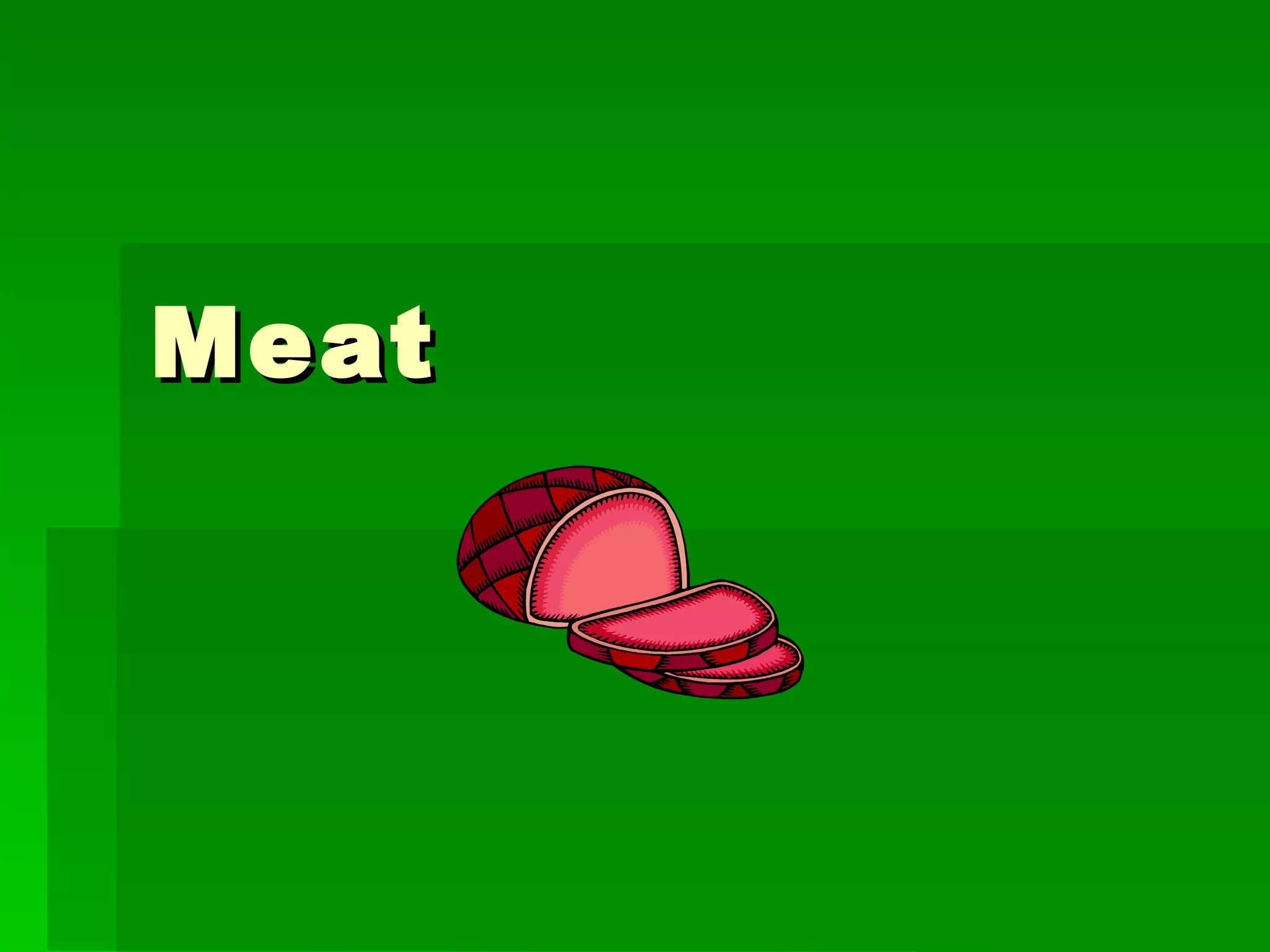 The document provides information about factors to consider when purchasing meat, including wholesomeness, quality, nutritive value, cost, and labeling. It discusses choosing lean cuts low in fat and cholesterol for health. Quality is described by USDA grades like Prime and Choice for tenderness and flavor. Storage times in the refrigerator or freezer are suggested to keep meat safe.