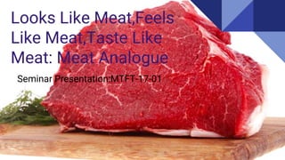 This document discusses meat analogues, including what they are, why they are produced, who eats them, and their potential benefits. It defines meat analogues as plant-based or cell-cultured products that mimic the texture, taste and nutritional value of animal meat. Key reasons for their production include lower costs and environmental impacts compared to meat. The document outlines various structuring techniques used to make meat analogues, such as extrusion and electrospinning, and popular products like tofu, tempeh, and TVP.