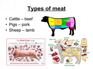 The document discusses the structure, composition, and nutritional value of meat and fish. It describes how the proteins actin and myosin are responsible for muscle contraction in meat. It also examines the spoilage processes in meat and fish if not properly stored or preserved and provides details on various preservation methods like canning, freezing, and smoking to prevent spoilage.