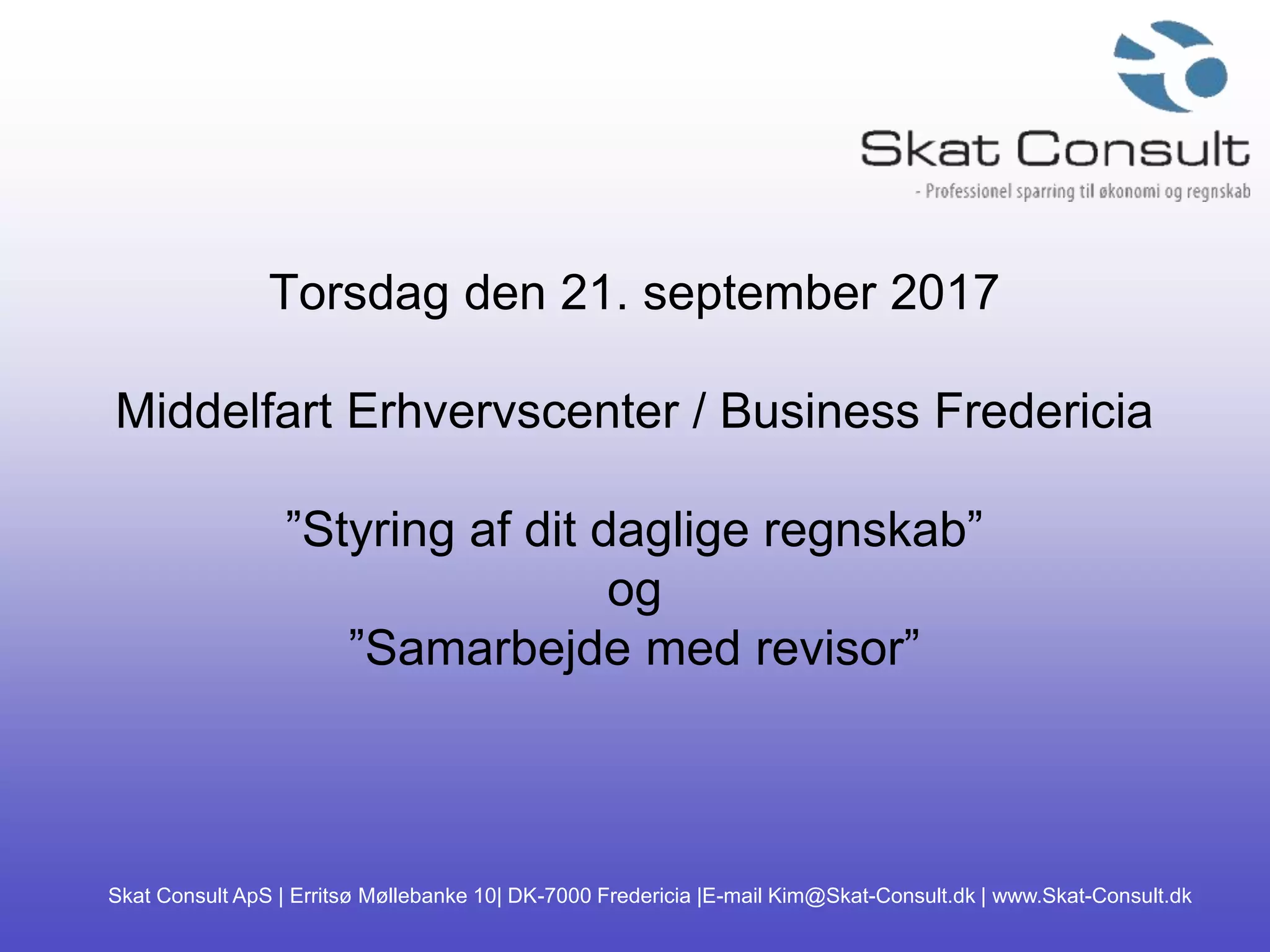 Skat Consult ApS| Erritsø Møllebanke 10| DK-7000 Fredericia |E-mail Kim@Skat-Consult.dk | www.Skat-Consult.dk