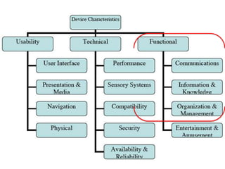 This document summarizes a presentation on mobile teaching and learning. It discusses how mobility has evolved in educational technology forecasts from 2005-2011. Examples are provided of how universities have incorporated mobile learning, such as anatomy apps and augmented reality systems. Challenges of mobile learning include issues around device ownership, costs, and assessing impacts beyond just content delivery. The document concludes by outlining frameworks for evaluating mobile learning initiatives, including examining usability, technical functionality, and alignment with learning goals.
