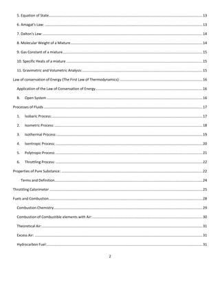 This document provides an overview of power plant technology and thermodynamics concepts. It covers topics such as the first law of thermodynamics, the ideal gas law, steam power plant cycles, combustion of fuels, gas turbines, and other power generation methods. The document defines important thermodynamic terms and equations for analyzing power plant systems and their various components like boilers, turbines, condensers. It also discusses gas mixtures, ideal gas behavior, and properties of pure substances important for power plant design and operation.