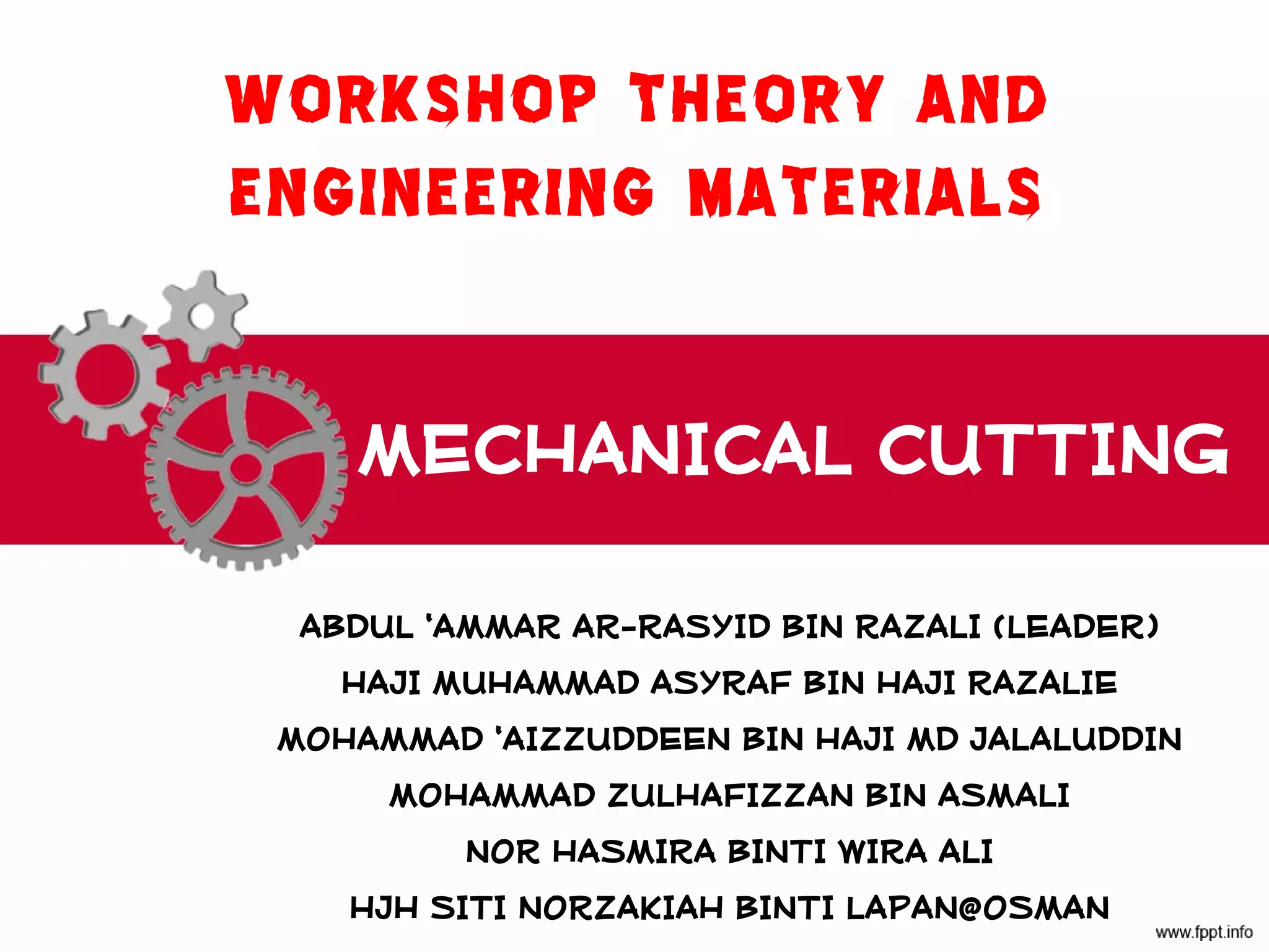 Mechanical cutting involves splitting a workpiece into two by removing a thin slice of material. The key processes are sawing using hacksaws, bandsaws, and circular saws. Hand shears use one hand to snip and collect while long blades make them versatile. Bench shears are mounted and have a lever mechanism to increase force but cannot do delicate work. Guillotines use a heavy sliding blade for beheading. Shear machines cut stock without chips using straight or curved blades for sheet metal. Nibblers cut sheet metal with minimal distortion using punch and die or scissor-like mechanisms. Bench shears can normally cut up to 0.5mm thick mild steel.