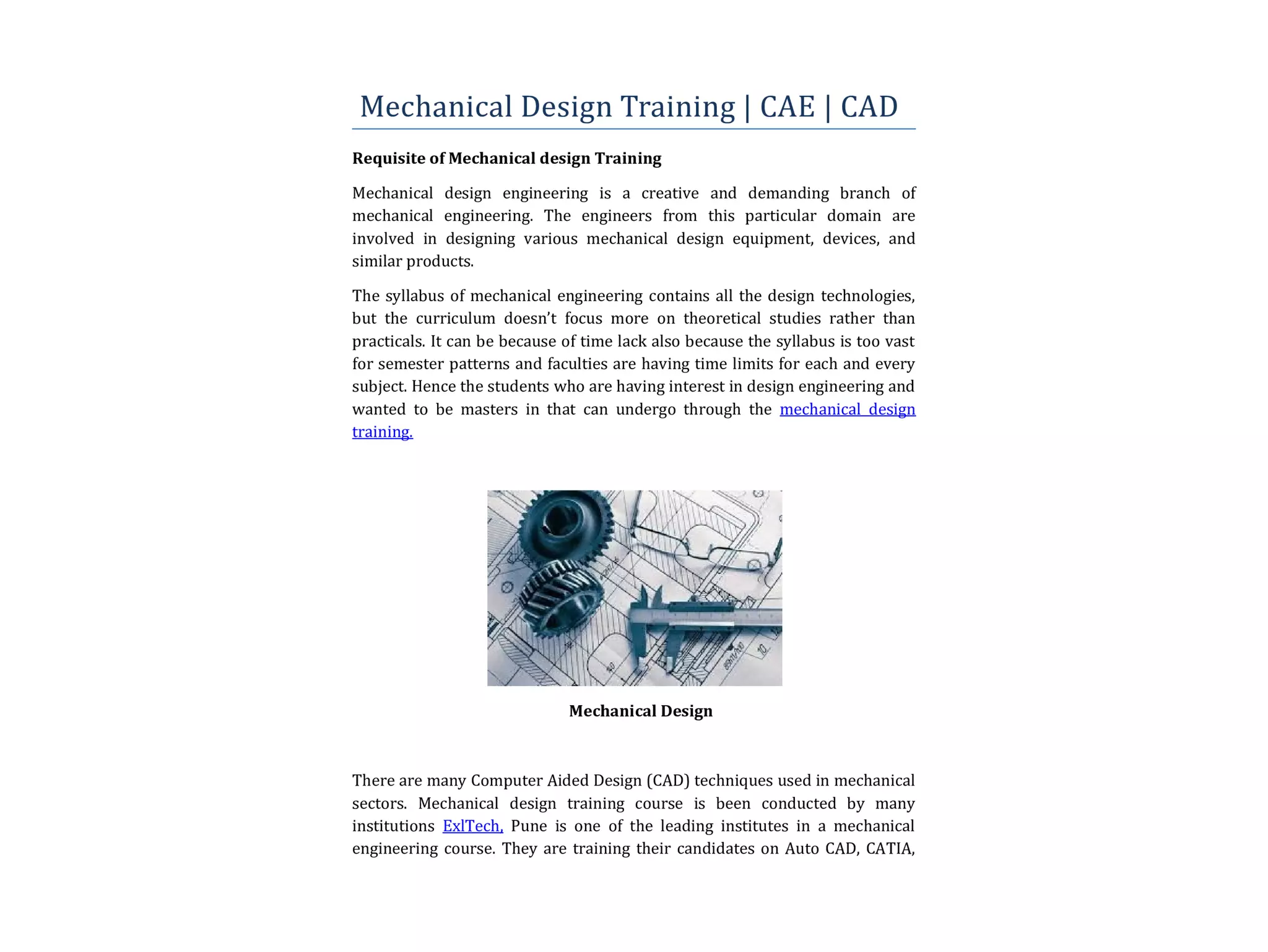 Mechanical design engineering is a creative and demanding branch of mechanical engineering.