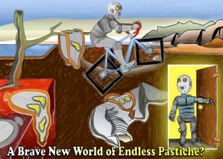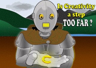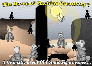The document explores themes of artificial intelligence, creativity, and existential questions through a series of abstract dialogues and references. It poses philosophical queries about the nature of creative thought in machines and the implications of AI on humanity's future. The interactions touch on humor, strategic analysis, and the uncertainties of technological advancement.