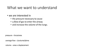 1) Volume-controlled ventilation (VCV) targets a set flow and cycles based on a set volume, with the pressure waveform determined by the respiratory system and patient effort.