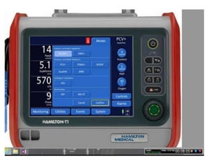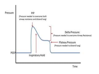 This document outlines the principles and techniques of mechanical ventilation, detailing reasons for intubation, modes of ventilation, and the significance of tidal volume and respiratory rate settings. It discusses troubleshooting methods using the 'DOPES' and 'DOTTS' frameworks, along with case scenarios to illustrate practical application. Additionally, the document provides reference materials for further reading on emergency medicine and critical care practices.