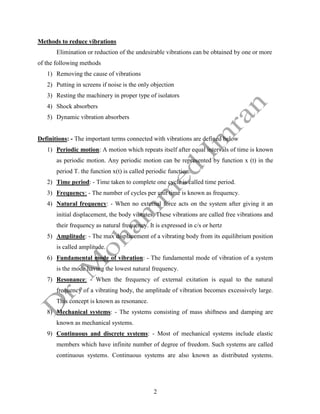 This document discusses mechanical vibrations and provides definitions and classifications of vibration terms. It covers the following key points in 3 sentences: